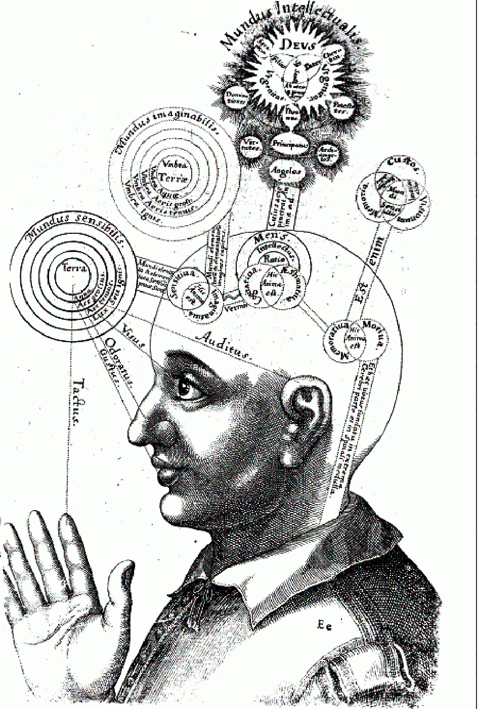 Spirituális agy ábrázolása, amely közvetítő a fizikai és metafizikai világ között.