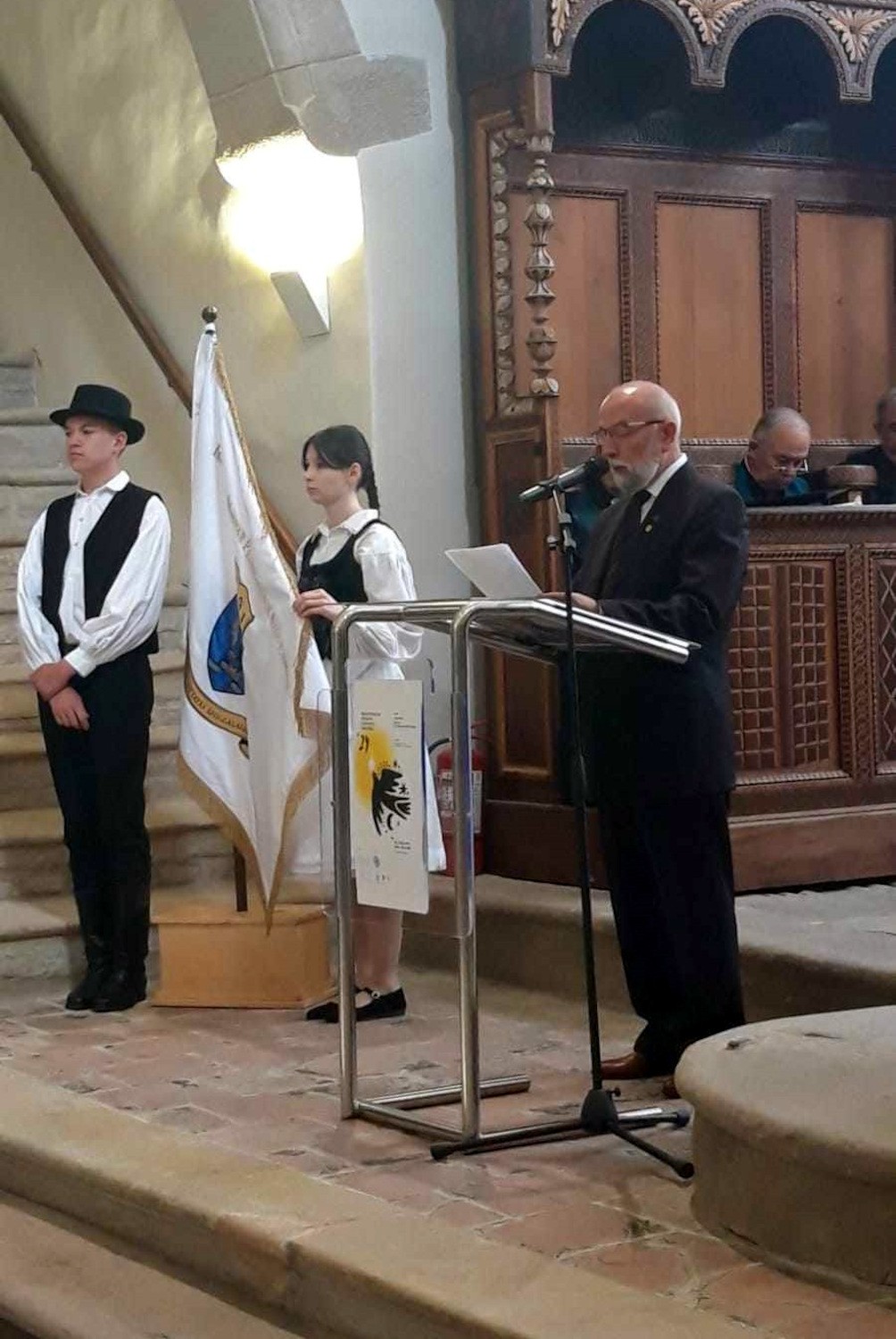 Az egyházi szertartás után műsorvezetői minőségében Antal Attila, a besztercei Andrei Mureşanu Főgimnázium magyar tagozatának igazgatója köszöntötte az egybegyűlteket.