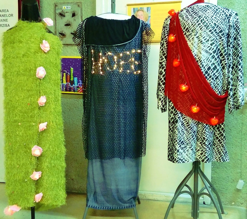 A spontán ihlet késztette a tavaszt idéző három jelképes ruhaköltemény kiszabására, megvarrására, díszítésére. A hosszú szálú bolyhokkal ellátott fűzöld műselyem ruhát műanyag világító rózsák díszítik, innen a neve is: A rózsakert. A sötétszürke nejlondzsörzéből és fekete neccanyagból készült ruhát világító körtécskékből a remény felirat díszíti, ami a ruha neve is egyben. A fekete-fehér krokodilmintás, vastagabb dzsörzéruhát piros elasztikus tüllből készült sál díszíti, rajta világító szívecskékkel, amely A szívem ruhája elnevezést kapta.