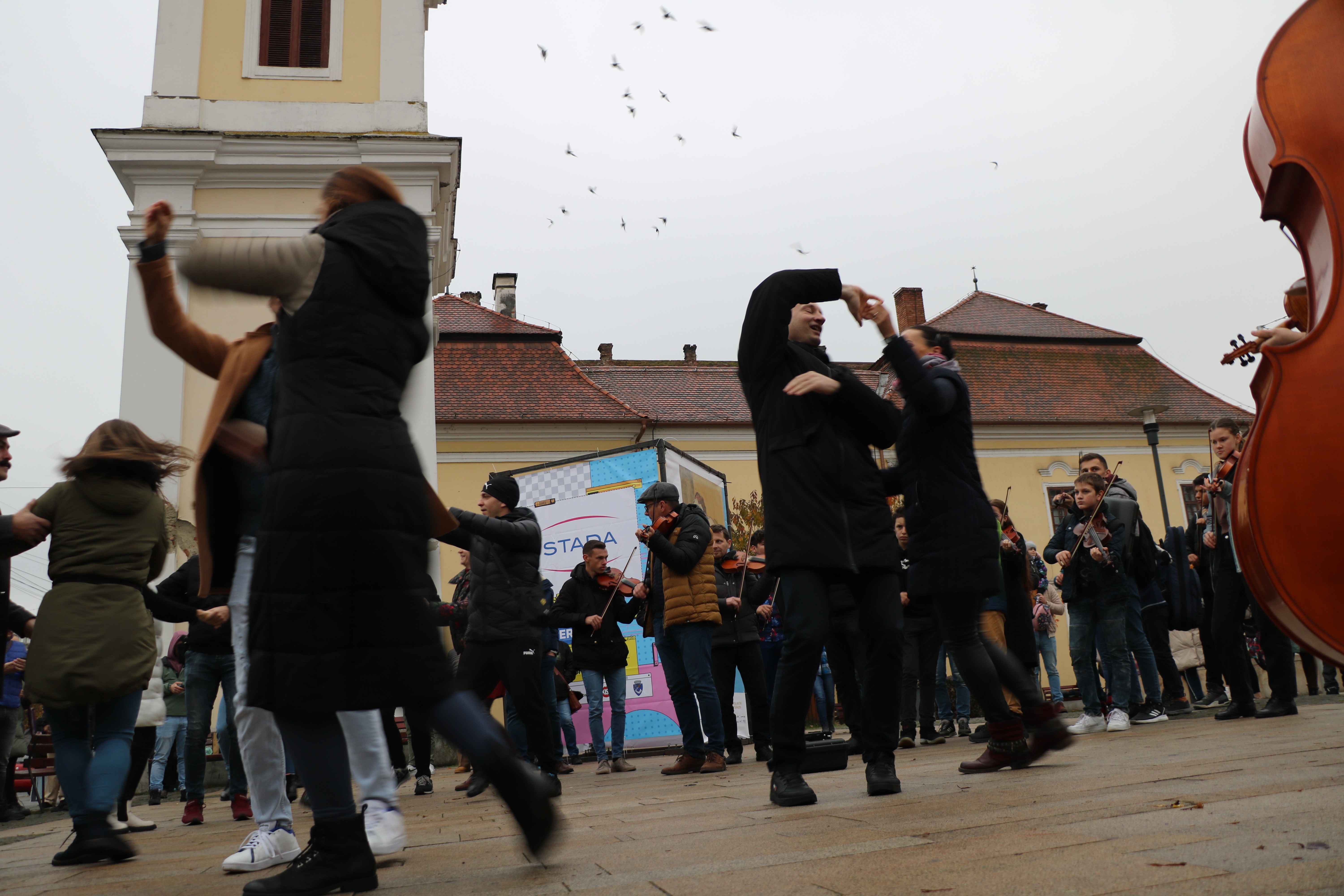 A hétfői villámcsődülettel a zenészek és táncosok pedig egy gyönyörű színfoltot teremtettek a szürke, borús hétköznapban, amit a jelen levők mosollyal és tapssal jutalmaztak!