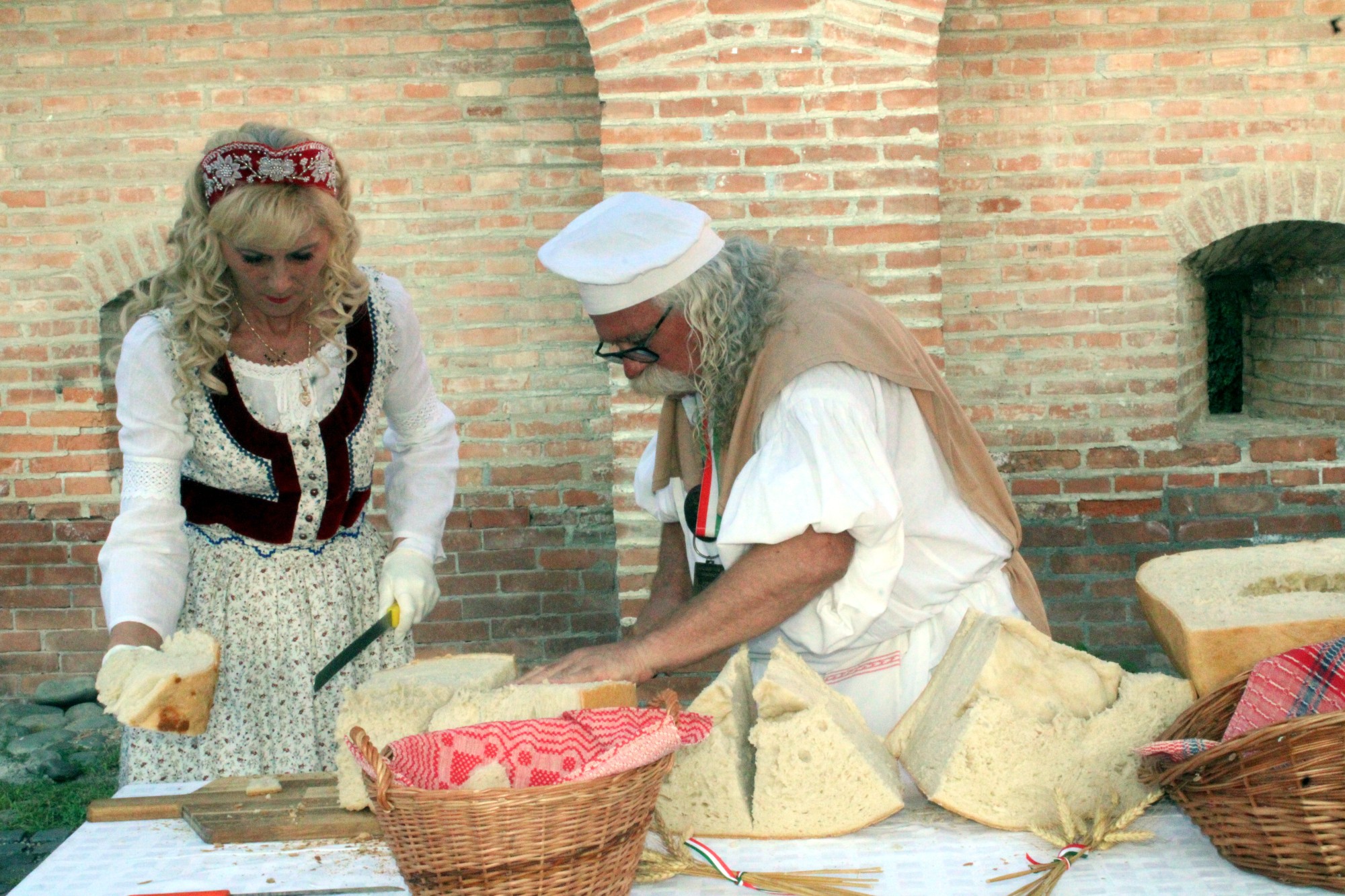 Igazán finomra sikerült az idei új kenyér, amit mindenki megkóstolhatott. A Borsika együttes tagjai kosarakkal járták körbe a nézőteret, s kínálták meg az ünneplőket.