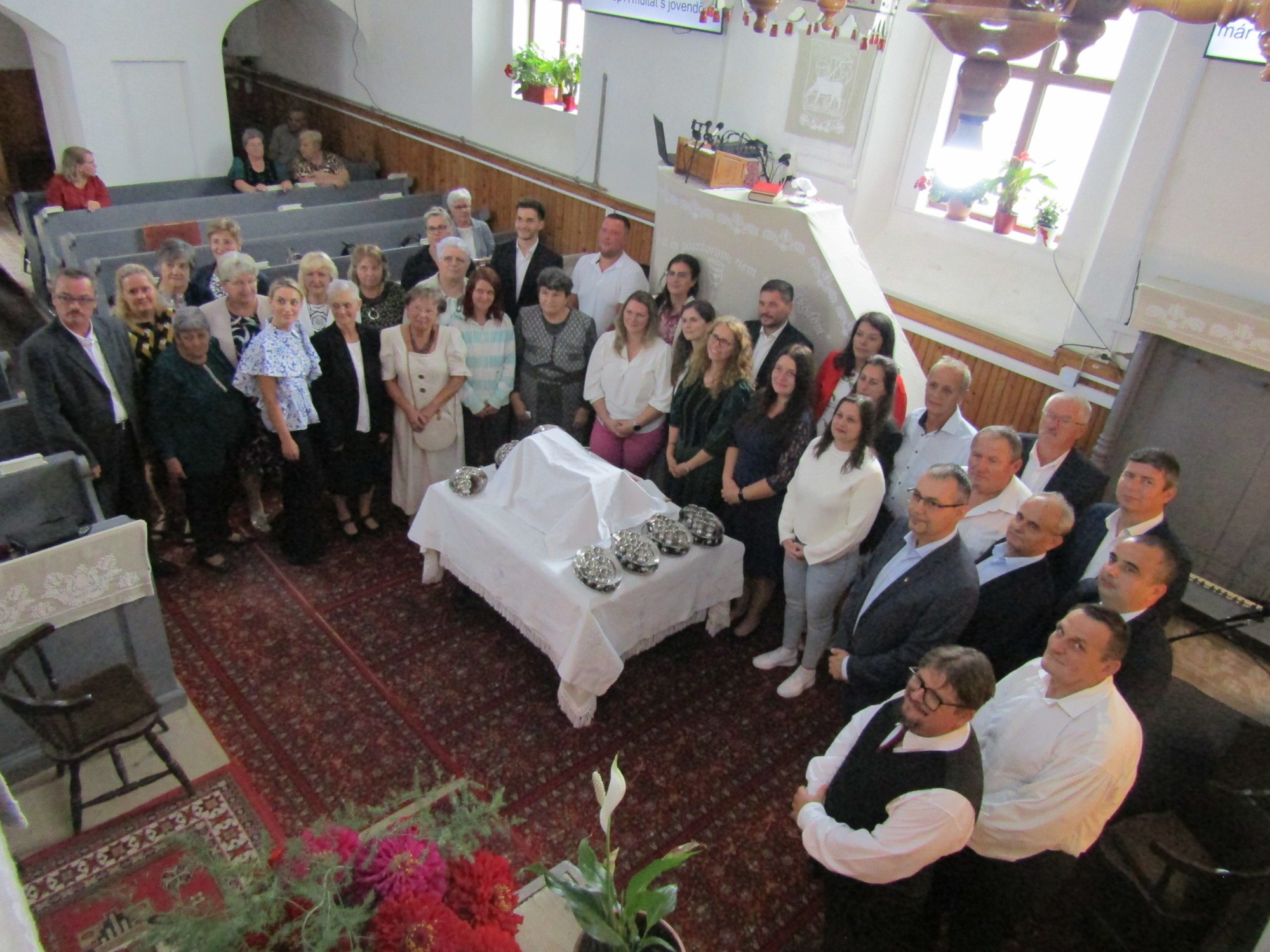 – Több mint száz meghívottból 35-en voltak jelen. A leghangsúlyosabban a húsz, illetve harminc éve konfirmáltak generációja képviseltetett, de négy olyan vendégünk is volt, aki hat évtizede tett vallást a hitéről. A jelenlevők kizárólag Maros megyéből érkeztek, az ország távolabbi részeiről, illetve külföldről senki sem jött el. Úgy gondolom, hogy a sok esetben előre betervezett szabadságolások időszakában ez teljesen érthető. Mi igyekeztünk mindenkit időben értesíteni, de az a gond, hogy a gyülekezeti tagok nagyon szétszóródtak, és amikor az anyakönyvi adatok alapján próbálunk a nyomukra akadni, sokszor nem tudjuk, mi a férjezett nők családneve, ki van még életben, illetve ki hol tartózkodik. Ezért ilyenkor a meglévő gyülekezeti tagok kapcsolataira alapozunk, és így az érintetteknek mintegy 80%-át sikerül elérnünk. Véleményem szerint 105 meghívottnál a 30%-os részvétel igen örvendetes, szép eredmény. Azt viszont fájdalmas pontként említhetem, hogy a 35 jelenlevőn kívül talán még tízen eljöhettek volna azok közül, akik a faluban élnek. De bánkódás helyett inkább összpontosítsunk azokra, akik velünk voltak. Úgy láttam, hogy ez az alkalom lelkileg nagyon feltöltött mindenkit, aki élt a találkozás lehetőségével, mesélt az életéről, meghallgatta a többiek történeteit, és bepillantást nyert a jelenlegi gyülekezeti életbe. Meglátásom szerint ezek a hívek a gyökérkeresésnek egy újabb állomásához értek, ezért egyértelmű, hogy ezeket a jubileumi együttléteket a továbbiakban is folytatni kell.