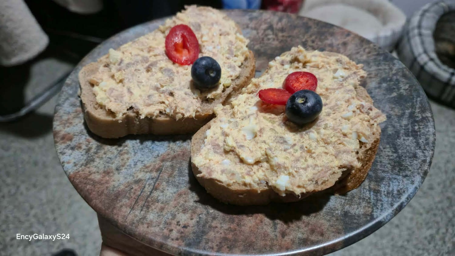 Hozzáadom az apróra vágott hagymát és a marhahúst, sózom, borsozom ízlés szerint. Belekeverem az egy tojásból készült majonézt és egy evőkanál mascarponét. Villával alaposan összedolgozom, és sokáig keverem, míg krémes állagot kapok. Pirítóssal fogyasztjuk.