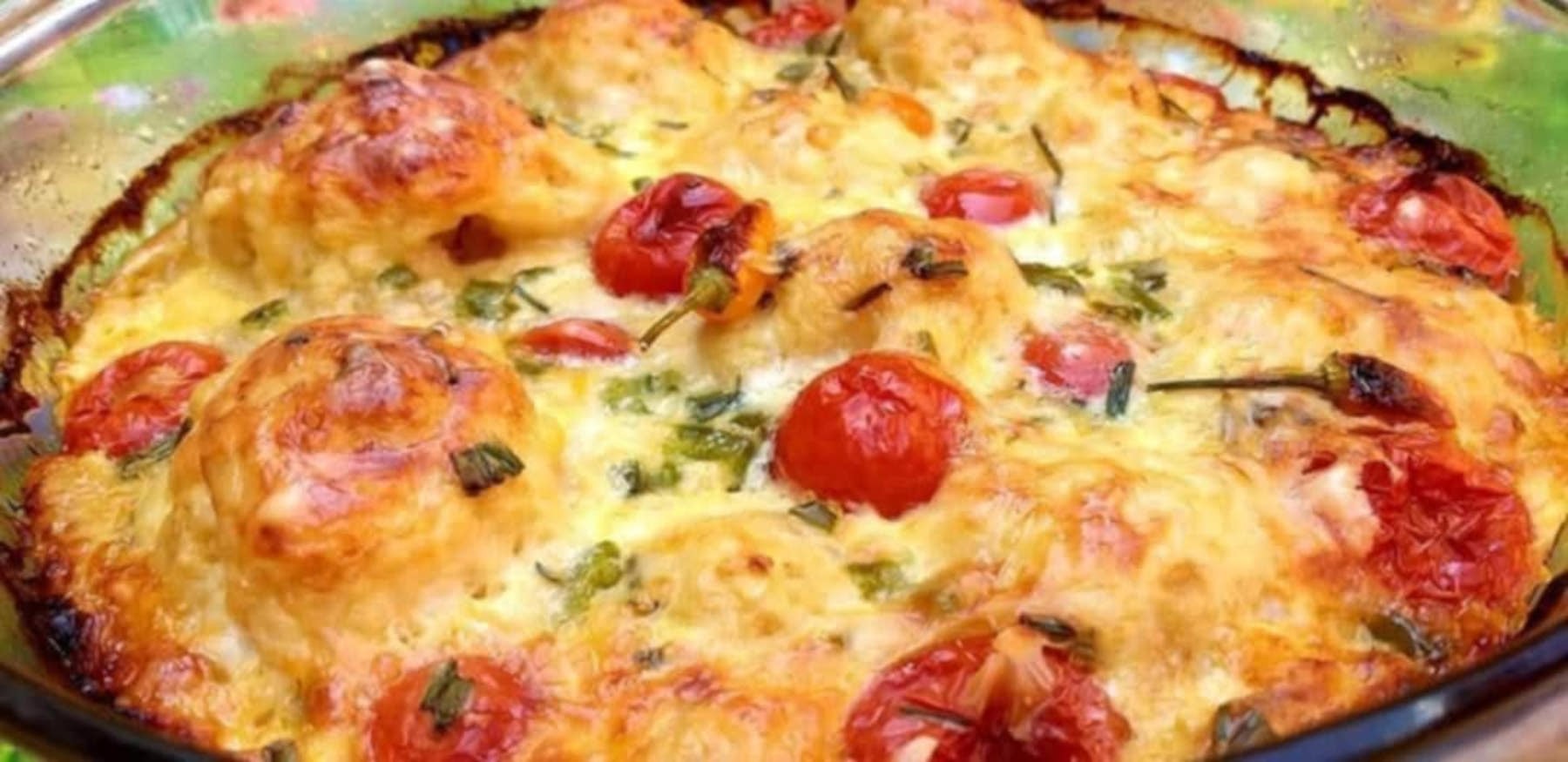 A karfiolt rózsáira szedem, és három percig sós vízben főzöm. A gombafejeket megsózom, borsozom, kb. 10 perc alatt kevés vajon egészben megpárolom, majd mindegyikbe belehelyezek egy-egy karfiolrózsát. Egy jénai tálat kivajazok, a megtöltött gombafejeket belehelyezem, cherry paradicsomokat rakok a gombafejek mellé, azaz kitöltöm velük a rést. Egy szelet vajat felolvasztok, három evőkanál lisztet 3,5 dl tejjel, szerecsendióval, sóval, fehér borssal, fél dl száraz fehér borral sűrű krémmé főzök. Kissé kihűtöm, majd három tojást, három evőkanál tejfölt keverek hozzá (pár cikk zúzott fokhagyma is kerülhet bele). Ráöntöm a gombára, megszórom vagdalt metélőhagymával és petrezselyemzölddel. Sütőben 180 fokon 20 percig összesütöm, majd jól megszórom reszelt sajttal, és pár percre visszateszem a sütőbe, és szép pirosra sütöm. Magában is nagyon finom, de találhatjuk rizzsel, krumplival is.