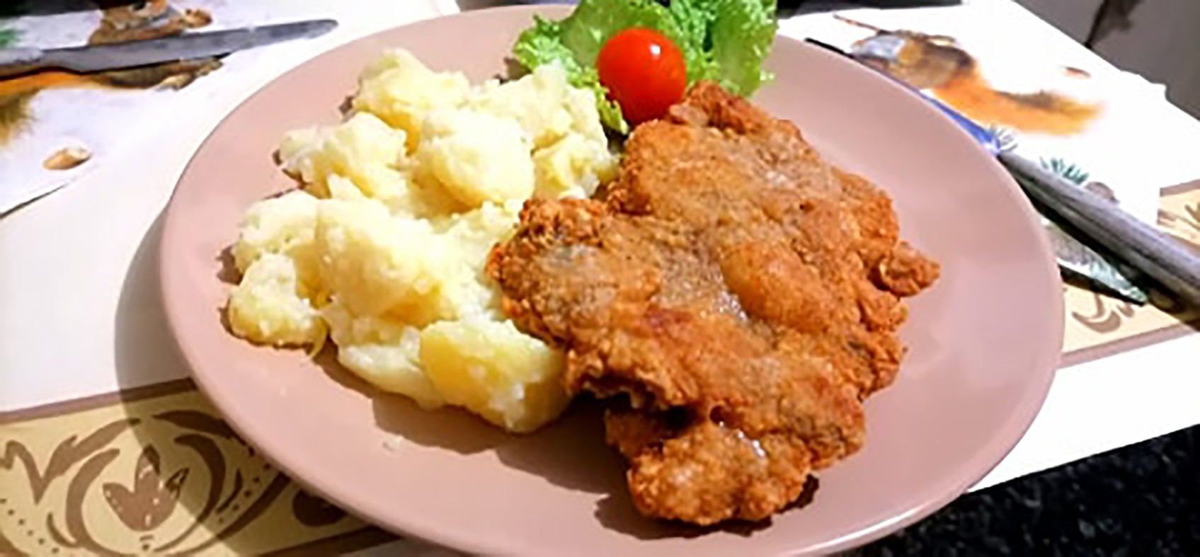 A laskagombát megmossuk, papírkendővel megtörölgetjük. Mindkét oldalán kis mustárral bekenjük, megsózzuk, borsozzuk, majd kb. 10 percig állni hagyjuk. Ezután lisztbe, tojásba, majd prézlibe (a prézlihez 2 evőkanál darált diót keverhetünk) forgatjuk a gombákat, és olajban mindkét felükön kisütjük. Krumplipürével fogyasztjuk.