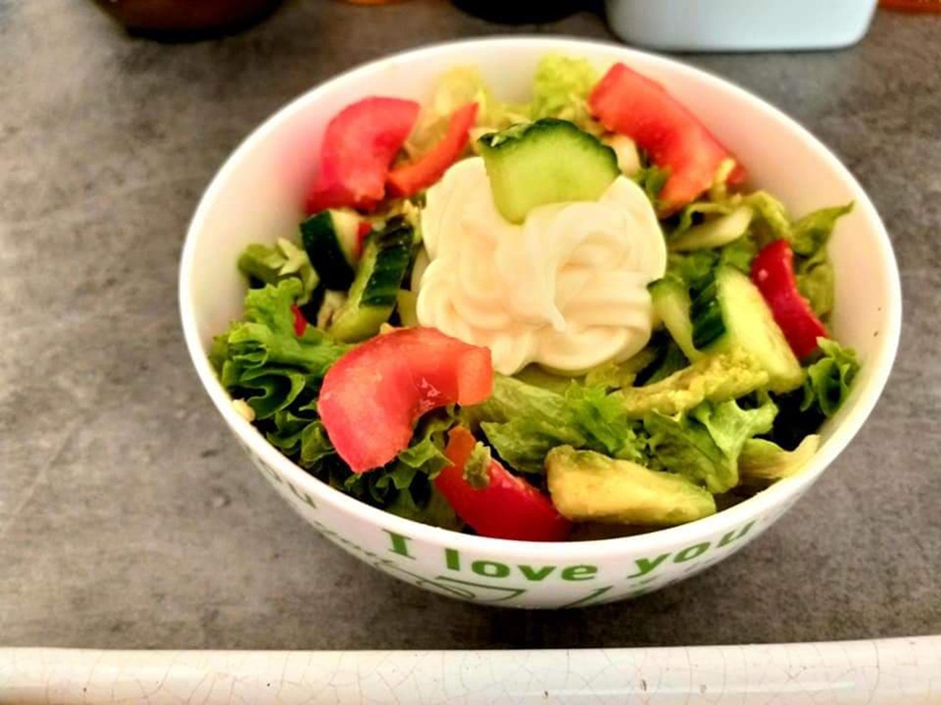 Szükséges hozzá 1 dl szója- vagy rizstej, 1 dl olívaolaj, 1/2 dl étolaj, 1 evőkanál kókuszzsír (elhagyható, akkor 2 evőkanál olívaolajjal többet használunk), 1 csapott evőkanál mustár, 2 evőkanál citromlé, ízlés szerint só. A tej, olaj szobahőmérsékletű legyen. Először a tejet és az olajat turmixoljuk a mixer legnagyobb sebességi fokozatán, majd hozzáadjuk a mustárt, a kókuszzsírt és a citromlevet. Kb. 2 percig turmixoljuk, és máris készen van a finom majonéz, ami akár 2 hétig is eláll. (Én picit módosítok néha rajta: 1 nagyobb krumplit megfőzök felkockázva, leszűröm és langyosra hűtöm. A citromlével, mustárral, kókuszvajjal egyszerre turmixolom.) Két részre oszthatjuk a majonezt. Felét zöldfűszerekkel (kevés mentalevél, metélőhagyma, kapor, petrezselyemzöld) „megbolondítjuk”. Salátaöntethez kefírrel kidolgozzuk. Szalmakrumplival a legfinomabb, de én legutóbb zöldségsalátával fogyasztottam.