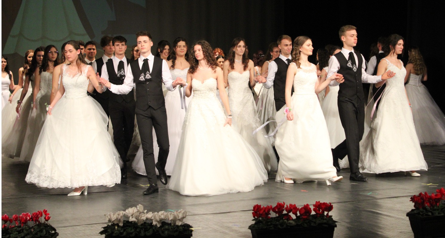 A jó hangulatot a műsor kezdetén a végzős diákok tánca teremtette meg. Szebben azokon a főúri bálokon sem járták, ahol a legkedveltebb táncok közé tartozott a keringő. Kár, hogy nem volt elég vállalkozó kedvű fiú, így mindenikre két lány jutott, de a helyzetet a táncot betanító Somody Katalin, a Dance Art Stúdió oktatója bravúrosan megoldotta.