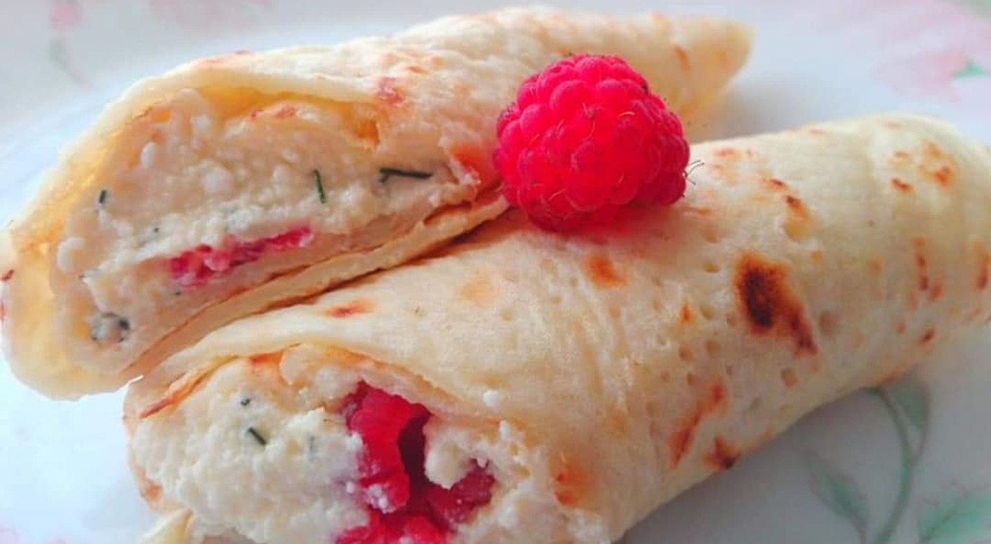 2 tojásból, 20 dkg lisztből, csipet sóból, ásványvíz hozzáadásával kidolgozzuk kellő sűrűségűre a masszát. A teflont megolajazzuk, kisütjük a palacsintákat. 50 dkg ordát 3 tojássárgával, 18 dkg porcukorral, 3 kis tasak vaníliával, 1/2 dl tejszínnel, 1 citrom héjával krémessé dolgozzuk. A palacsintákat megkenjük az ordakrémmel, amire málnát helyezünk tetszés szerint. Felcsavarjuk és fogyaszthatjuk is. Az ordakrémhez kevés zöldkaprot is tehetünk, de ez akár el is hagyható.
