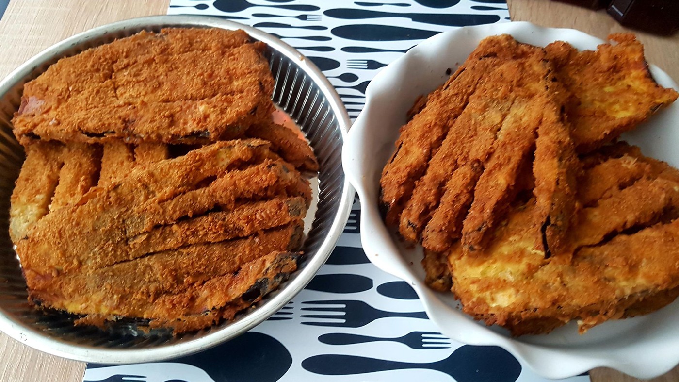 A vinettaszeleteket panírozzuk. Liszt – tojás – teljes kiörlésű kekszből készült őrleménybe (a teljes kiőrlésű kekszet reszelhetjük, aprítógépben is finomra dolgozhatjuk, amíg prézli jellegű port kapunk, vagy akár szét is nyomhatjuk) forgatjuk, amihez apróra vágott snidlinget, zöldpetrezselymet, pici mentát vagdalunk, és hozzákeverjük. Bő olajban sütjük, amíg szép aranysárga lesz. Friss zöldségekkel tálaljuk.