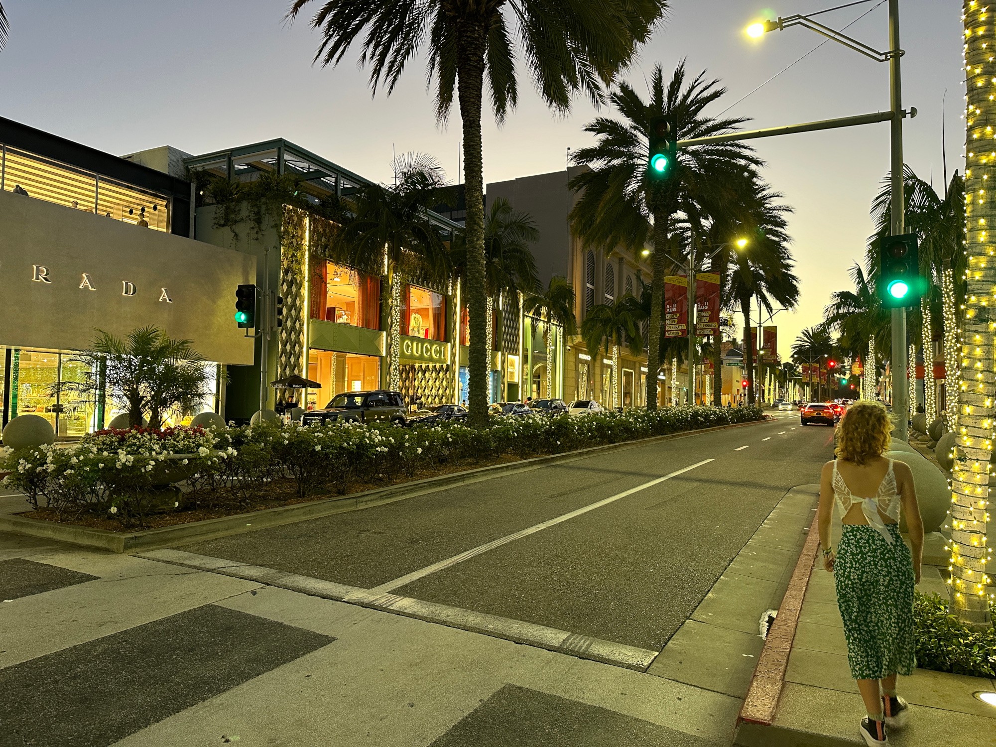 A sugárúton ezrek sétáltak, s közben mindenféle meghökkentő furcsaságot láttunk, olyat is, amit itt nem írhatok le, mert attól tartok, hogy leperegne a nyomdafesték az újságpapírról. Láttunk szuperjárgányokat, vonuló „szelíd” motorosokat, a forgalmas négysávos út közepére kifekvő, félig pucér narkóst, az LMBTQ közösség mindenik betűjéhez tartozót, és úgy általában a világ mindenféle rasszából és népéből származó extravagáns, totálisan excentrikus fazont. Mi csak egy romániai, erdélyi magyar család voltunk a tömegből, akik kíváncsian bámészkodtunk, s miközben a járdaszegélyen üldögélve kaptuk be amerikai hotdogjainkat, erőt gyűjtöttünk a további sétákhoz, melyek során eljutottunk az Oscar-gálák otthonául szolgáló Dolby színházhoz, valamint a Grauman’s Chinese Theatre – kínai pagodát mintázó – filmszínházhoz, amelynek egyik érdekessége, hogy az épület előtti téren számtalan híresség kéz-, illetve láblenyomata látható. A boulevardról az éjszakai mulatóhelyeiről híres Sunset Stripen autóztunk Nyugat-Hollywoodba, majd a Beverly Hillsben található Rodeo Drive-on kötöttünk ki. Itt megint úgy éreztük magunkat, mint akik egyáltalán nem illünk bele abba a világba. A világ egyik legdrágább bevásárlóutcájában ismerősek voltak ugyan a luxusvilágmárkák üzleteinek emblémái, de bemenni egyikbe sem mentünk, hiszen a 10 dolláros hátizsákjainkkal kissé kiríttunk volna mondjuk a Saint Laurent üzlet sok ezer dolláros ridiküljei és egyéb aranyárú ruhái között. Maradtunk az elegáns utcán, és bámultuk a kerekeiket csikorgató millió dolláros verdákat, s közben a fiamtól olyan, csak a felső tízezer számára elérhető autómárkák nevét tanultam meg, amelyekről korábban még csak nem is hallottam.
