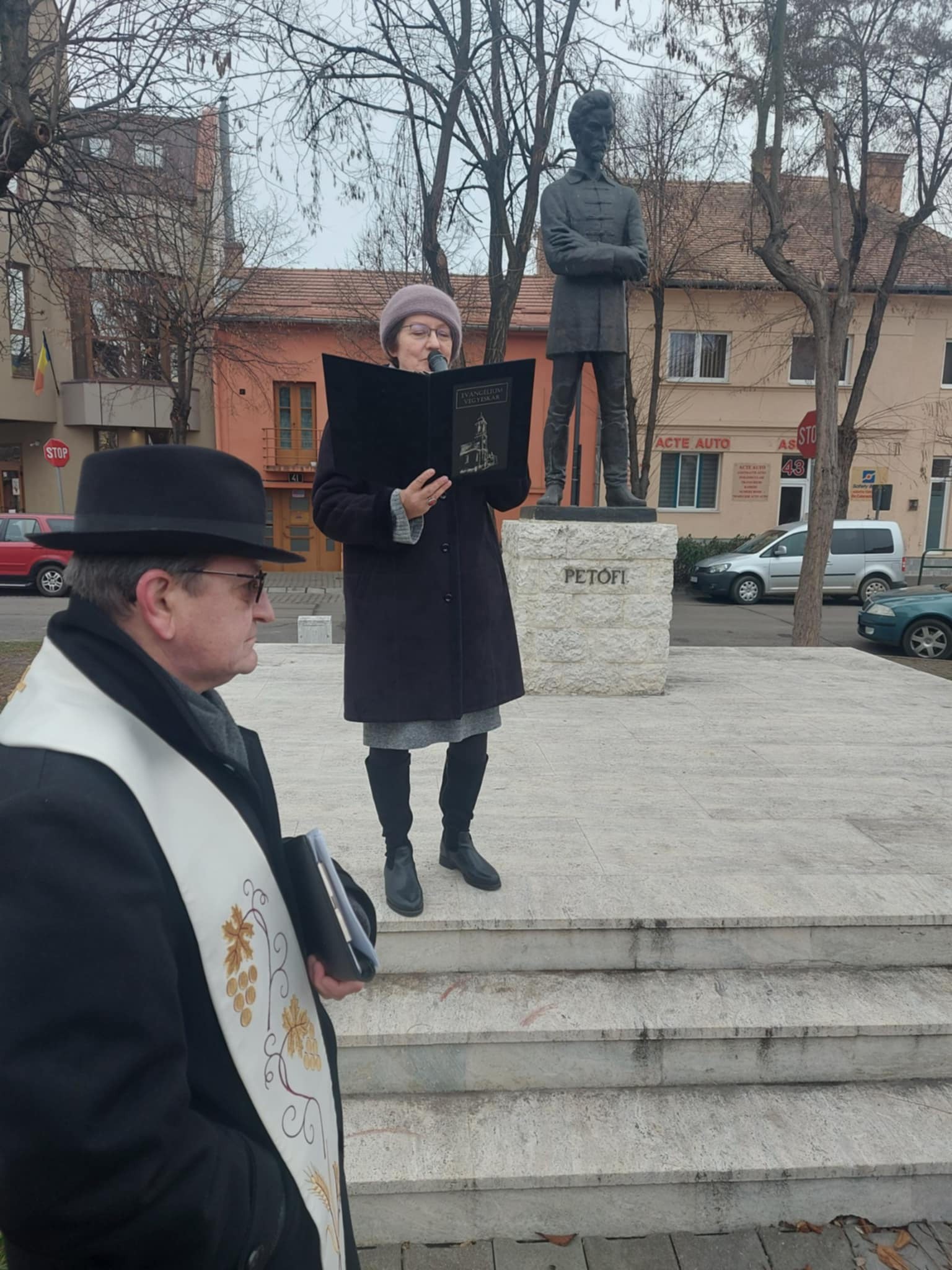 Petőfi Sándor 202 éve született, 1823. január elsején írták be a nevét a kiskőrösi anyakönyvbe. 2025 első napján, mint eddig is, sok éven át, az EMKE Maros megyei szervezete megtartotta a marosvásárhelyi Petőfi-szobornál a már hagyománnyá vált emlékező és újév-köszöntő ünnepségét. A rendezvény kezdetén Kilyén Ilka többek között elmondta, hogy a szobor Hunyadi László szobrászművész alkotása és 2000. december 16-án avatták fel. Székely Emese, a Bolyai Farkas Elméleti Líceum magyar szakos tanára emlékezett a nagy költőre. Szakács Endre címzetes katolikus esperes az előttünk álló 2025-ös jubileumi remény éve kapcsán elmélkedett a reményről. A Marosszéki Történelmi Vitézi Rend díszőrsége mellett, koszorúzás után, a szép számmal egybegyűlt marosvásárhelyiek Petőfi-dalokat énekeltek. A rendezvény himnuszaink eléneklésével zárult.