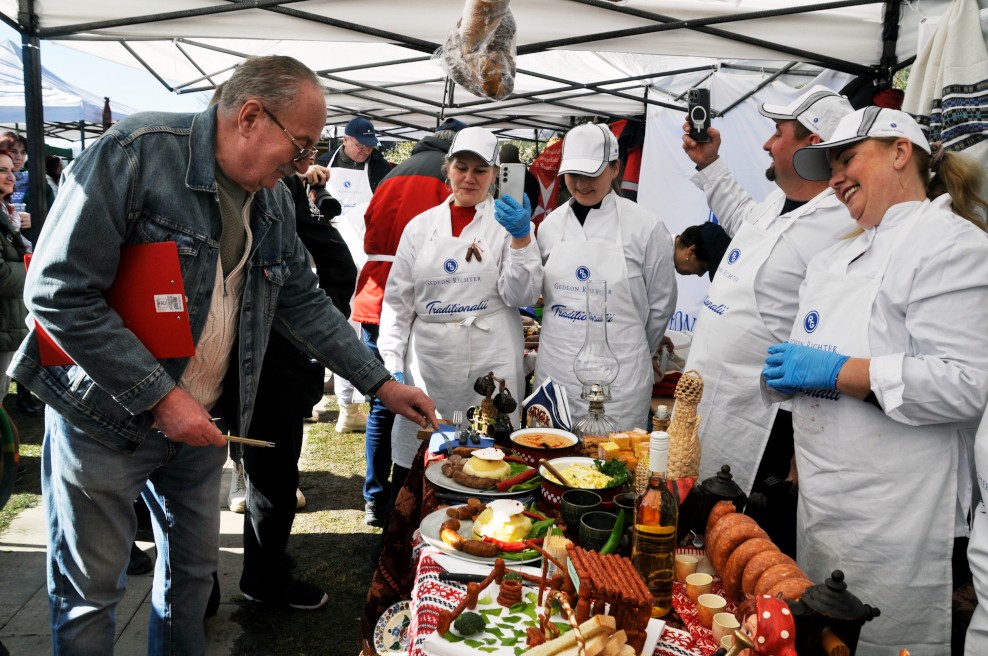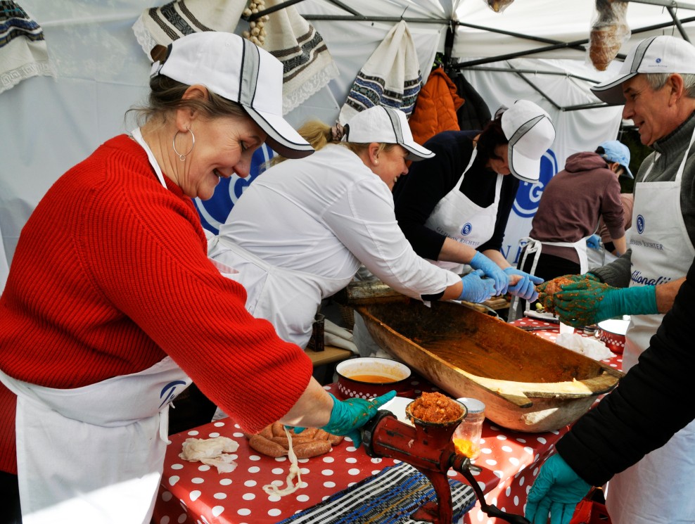 Szombaton délelőtt Kelementelkén, az egykori Simén-kúria, újabb nevén a Petry Estate Winery udvarán szervezte meg Marosvásárhely egyik legrégebbi és legismertebb, hentesárut forgalmazó cége a 8. kolbásztöltő fesztivált. Az idén az előző évekhez képest kevesebb, mindössze hét csapat nevezett be.