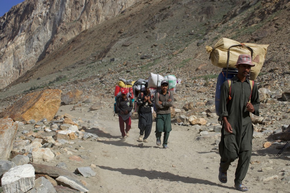 Teherhordók (porterek) A Biafo-gleccser olvadékvizéből készült az ebéd