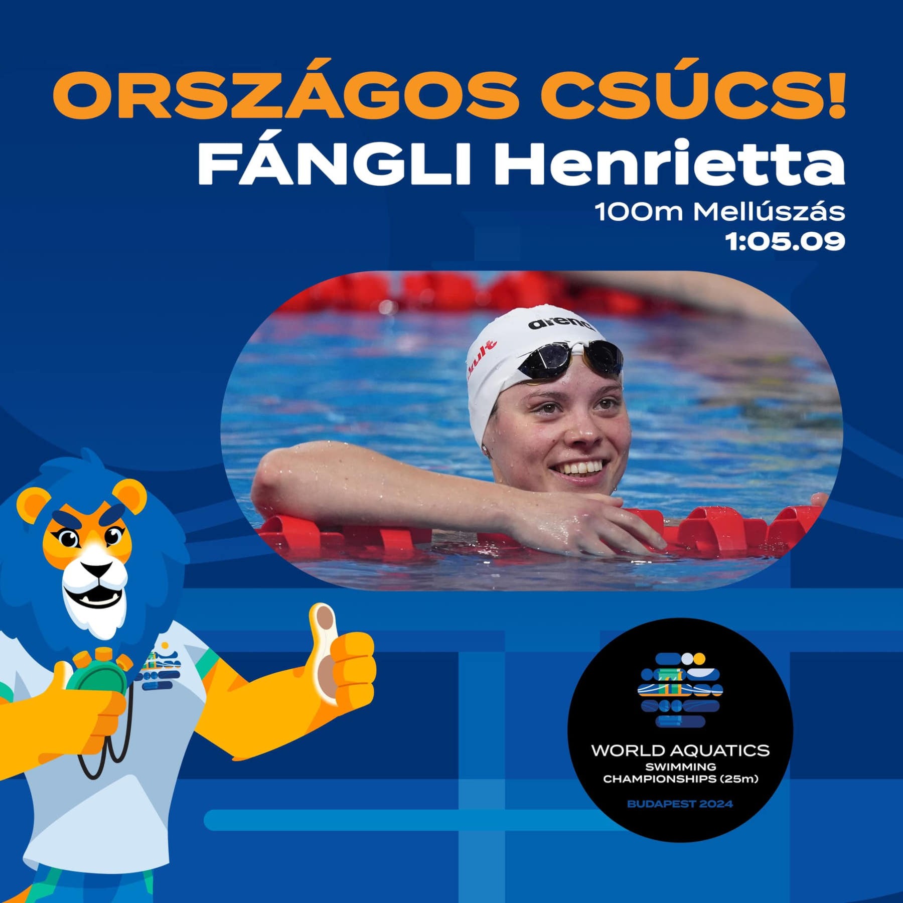 * Egy marosvásárhelyi úszó megdöntötte Hosszú Katinka tíz éve fennálló országos magyar csúcsát: a 23 éves Fángli Henrietta szerda délelőtt, a budapesti rövidpályás világbajnokságon 100 méter mellen 1 perc 5 másodperc 9 századmásodperc alatt teljesítette a távot, ezzel átadta a múltnak Hosszú Katinka 2014-es 1:05.60-as rekordját. Fángli Henrietta első alkalommal úszott magyar színekben, és összesítésben a 17. lett, 12 századdal csúszott ki a középdöntőből, amelynek így ő az első számú tartaléka. A verseny után könnyekkel küszködve nyilatkozta: nagyon hálás a lehetőségért, hogy ott lehet, a családja és a barátai előtt úszhat. Hozzátette: elsősorban nem az időeredményre gondolt, szerette volna megnyerni a futamát, ami sikerült is, ugyanakkor a 17. hely összesítésben némiképpen bosszantja.
