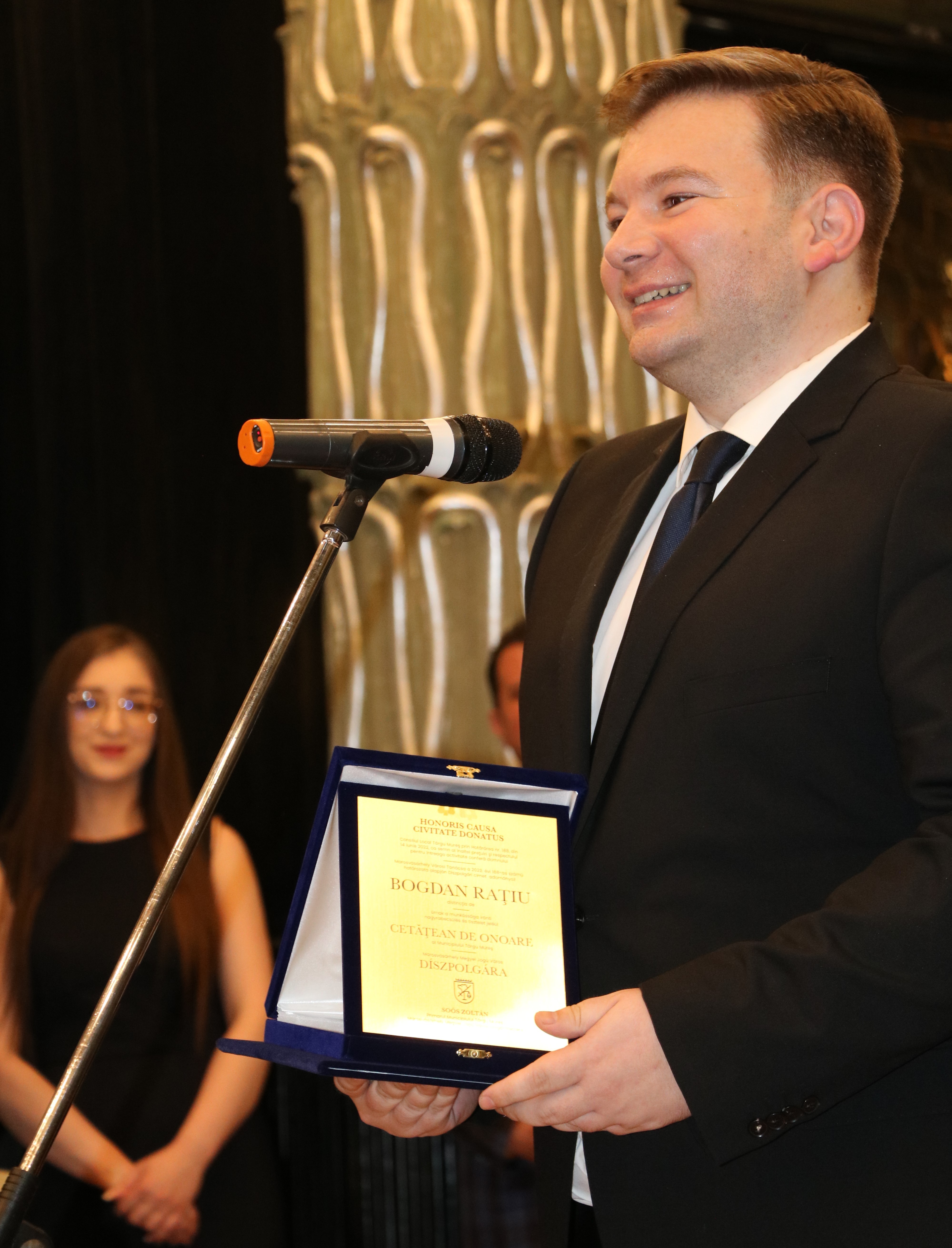 Szinten díszpolgári címet kapott dr. Rațiu Petru Bogdan, a Bolyai Farkas Elméleti Líceum romántanára, aki egy ismert és elismert személy mind a tanárok, mind pedig a diákok körében, hangzott el a laudációs szövegében. Rațiu Bogdan 2008 óta tanít a Bolyaiban, ahol kiváló eredményeket ér el a diákokkal. A kezei között tanuló diákok közül többen eljutottak a román nyelv és irodalom tantárgyverseny országos döntőjébe. Ez azért is kiemelkedő eredmény, mert magyar anyanyelvű diákokkal dolgozik. A 2019-ben Meriot díjat kapott Rațiu Bogdan elmondta, hogy sokat kösöznhet a városnak és reményét fejezte ki azzal kapcsolatban, hogy a jövőben is képes lesz úgy nveleni a diákjait, hogy azok egy dinamikus közösséget tudjanak kialakítani.