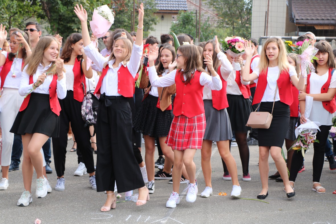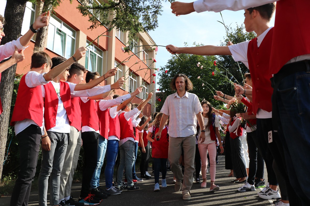 A továbbiakban Corina Muntean aligazgatónő üdvözölte az egybegyűlteket, a következő percekben pedig rögtönzött virágkapun indultak az újdonsült kisdiákok tantermeik felé.