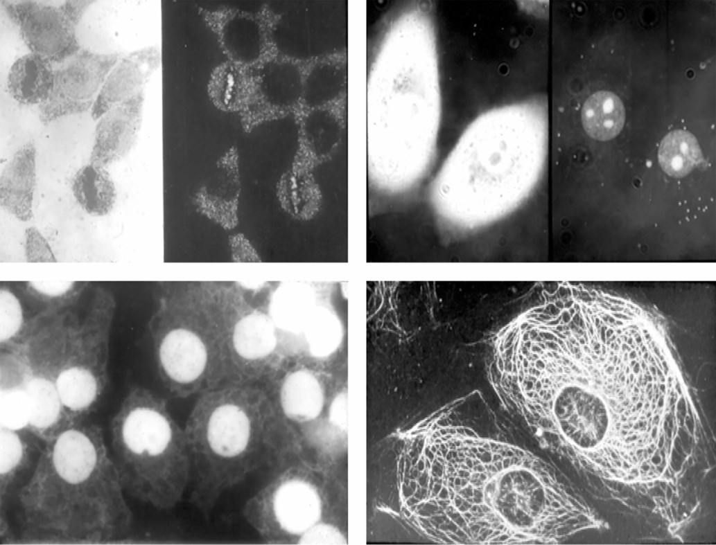 Kellermayer professzor fénymikroszkópos felvételei sejtekről és a sejt belső vázáról (citoszkeleton)