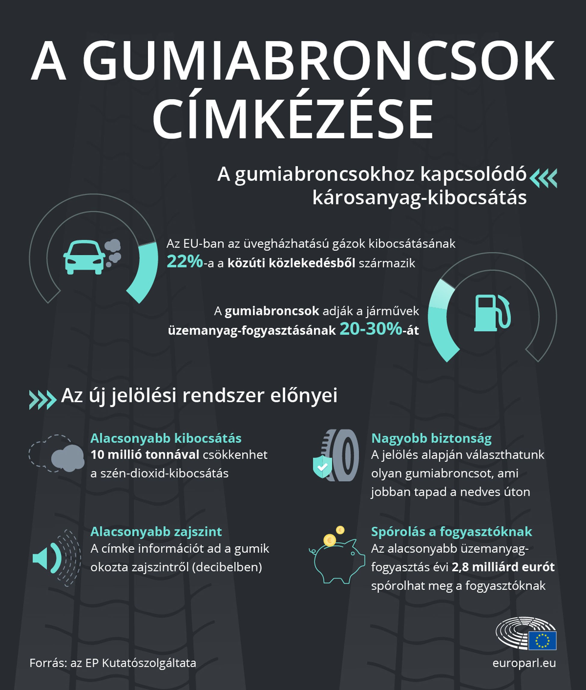 Az új címkézési rendszer akár tízmillió tonna szén-dioxiddal kevesebb kibocsátást jelenthet, a gyártóknál pedig 9 milliárd eurós forgalomnövekedést eredményezhet. Életbe lépésével az új rendelet felváltja a gumiabroncsok címkézéséről szóló 2009-es rendeletet.