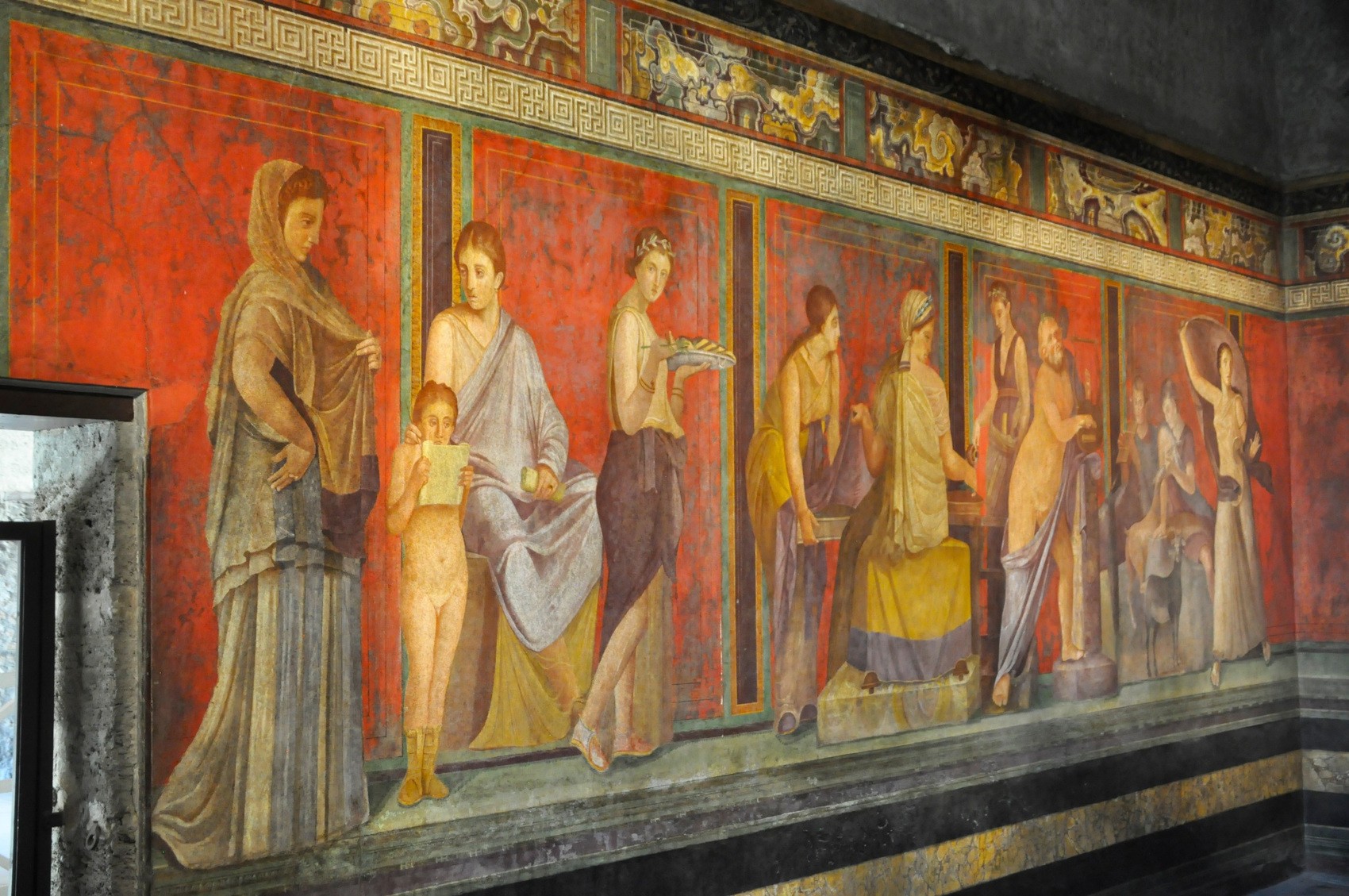 Az ókori római kultúra zsenialitásának példái a fürdők (therme), amelyekből több is van Pompejiben, minden akkori kényelemmel, ruhatároló fülkékkel, hideg és meleg vizes medencékkel, masszírozóteremmel, padló- és falfűtéssel, gyönyörűen díszített termekkel. Itt is szép számban találhatók tavernák, konyhák olajpréssel, kemencével és minden olyan akkori eszközzel, ami a mai embert is kiszolgálja modern változatában. A közművesítés néhány eleme is figyelemre méltó, az utcák, a lefolyók, a csatornák, a vécék – minden volt, ami kiszolgál egy jól működő várost. Mi több, ma is a legnagyobb érdeklődés az egykori Lupanaria iránt van (egyedül itt kellett sorba állni, hogy az épületet megtekinthessük belülről is). Ez volt a bordélyház, ahol kis fülkékben még mindig láthatók a kőágyak (valószínűleg ezeken egykor ágynemű is volt), a falakon pedig explicit jelenetek a szolgáltatásokról. S ilyen házból több is volt, hiszen találkoztunk férfi nemi szerv domborművel jelzett épülettel is.