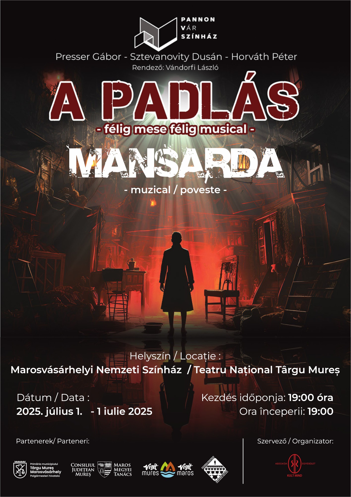 A Kult Mind Egyesület örömmel jelenti be, hogy július 1-jén bemutatásra kerül A padlás című legendás musical Marosvásárhelyen, a Nemzeti Színház színpadán. Az ingyenes helyjegyek kevesebb mint 24 óra alatt elfogytak, ami egyértelműen jelzi: a marosvásárhelyi közönség nyitott és éhes az értékes, minőségi kulturális élményekre.