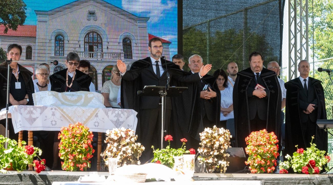 Mai szemlélettel nagyon nehéz megérteni a bibliai történetet. Jefte lánya feláldozására kényszerül, de fel sem merül benne, hogy változtasson a fogadalmán. A lánya is arra biztatja az apját, hogy tartsa meg a fogadalmát. Azok számára, akik számtalanszor csalódtak a fogadalmakban, Isten ma is azt üzeni, hogy az ő fogadalma és ígérete nem változott, velünk kötött szövetségén Jézus Krisztus halála a pecsét. Bonyhán Istennel újra fogadalmat kötöttünk, és új szívet, új erőt kaptunk – tette hozzá Kató Béla püspök, aki köszöntőbeszédében hozzátette, püspöki minőségében utoljára van jelen Bonyhán.