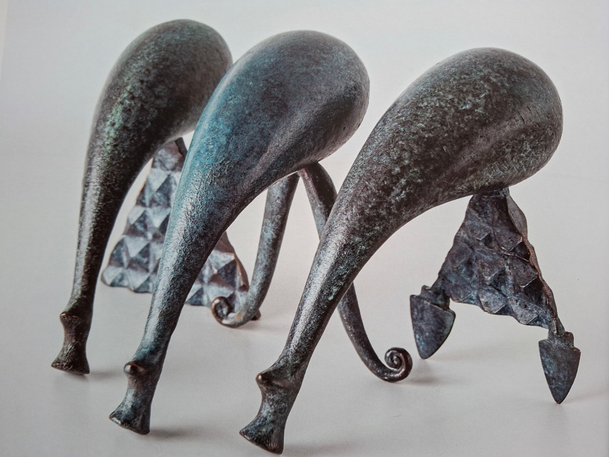 Törékenyek, képlékenyek, rendezettek… A művész ősi emlékezetéből, elmejátékaiból bukkantak elő. A munkák egyenként simultak a lapok közé. Méretben nem csökkentek. Nem is szelídültek. Teljes súlyukkal, patinájukkal, szimbólumokkal kerültek be oda.