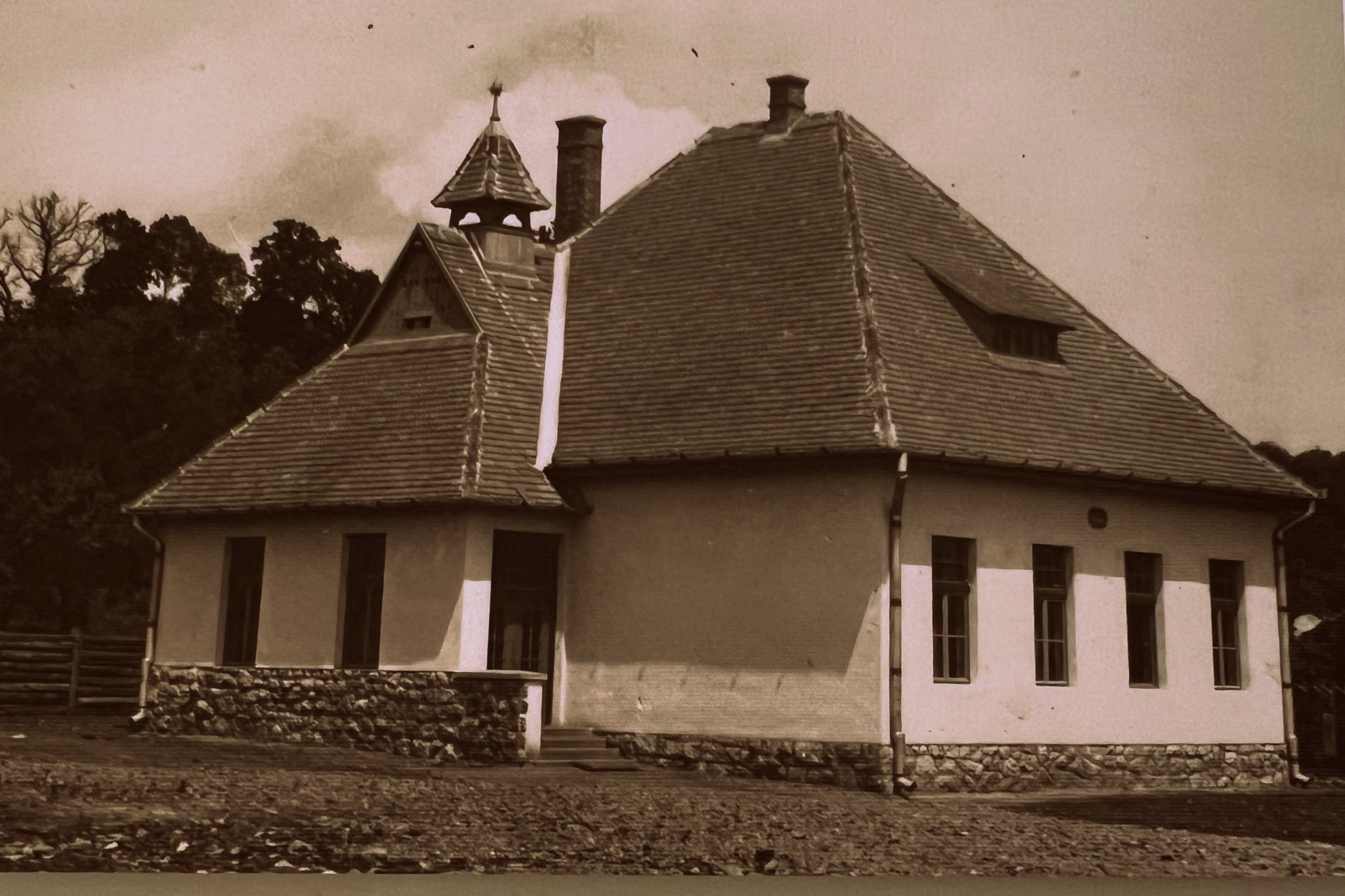 A Kós Károly tervezte marosvécsi huszártornyos iskolaépület, 1928 – az iskola kántortanító igazgatója akkor Kiss Lajos nagyapám volt