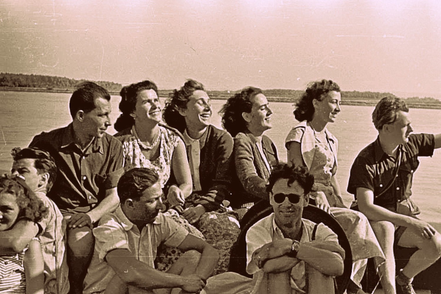 Bolyai Középiskola – Kiss Zoltán szervezte I. országos kirándulás. Felső sor: Kiss Zoltán, Liszka Pálné, Molnár Magda, ..., Leopold Irén, Kozma Béla; alsó sor: Csernát Ernő, Molnár József és Kiss Elemér. A fénykép 1955-ben készült a Duna-deltában.