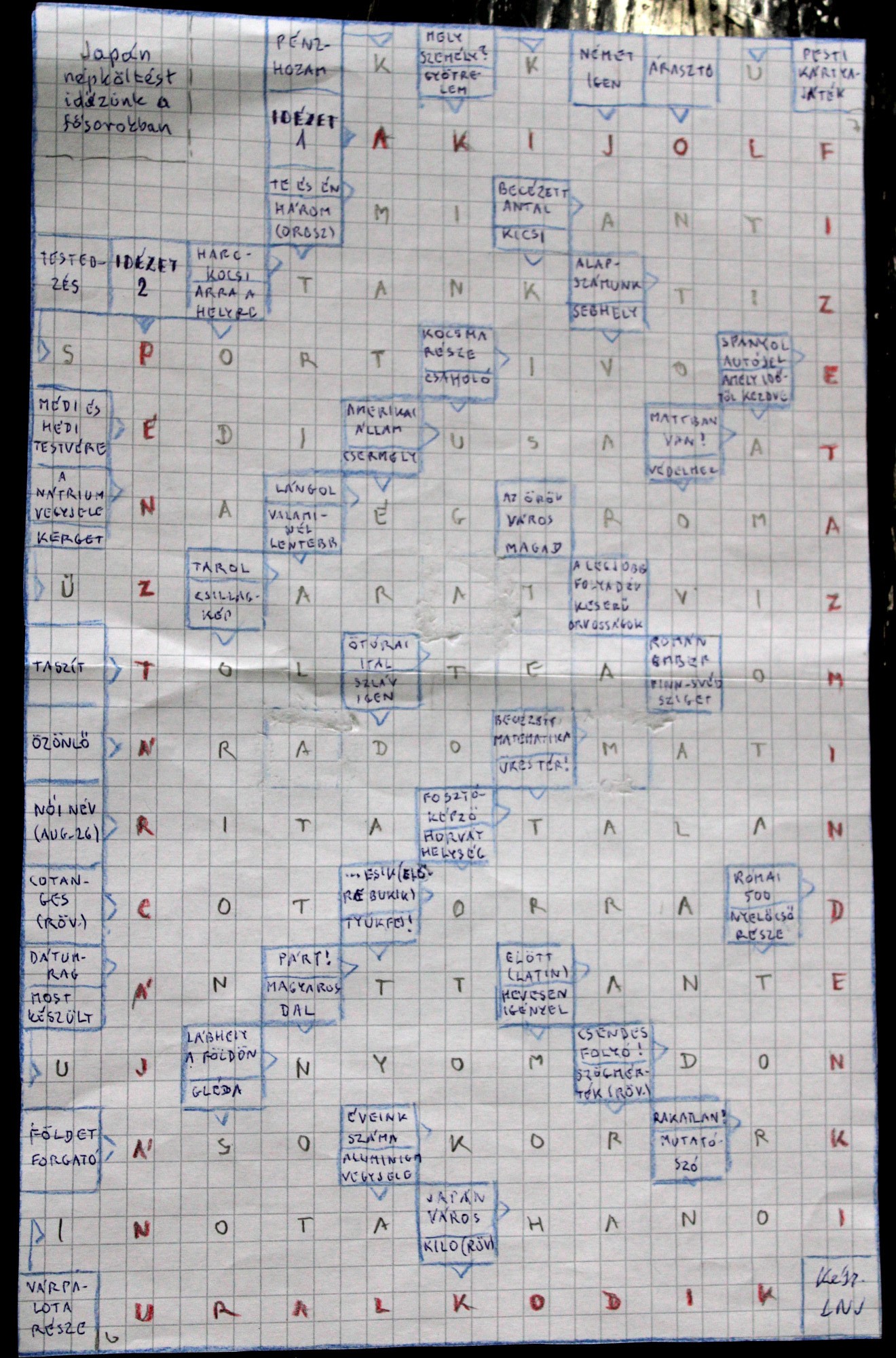 – Először is eldöntöm, hogy mekkora legyen. Én például 16x11-es méretűt szoktam készíteni, de nem csak ilyent. Az első lépés, hogy odamegyek a lexikonomhoz, és keresek benne egy olyan mondást, amit lehet idézni, az lesz a megfejtés. Erre a mondatra épül az egész rejtvény. Egy kisebb piszkozaton elvégzem a bekeresztezést, utána pedig az egészet átmásolom nagyobba, ide már úgy hozom. Mivel már megvan a rutinom, a rejtvényeim elég hamar elkészülnek.