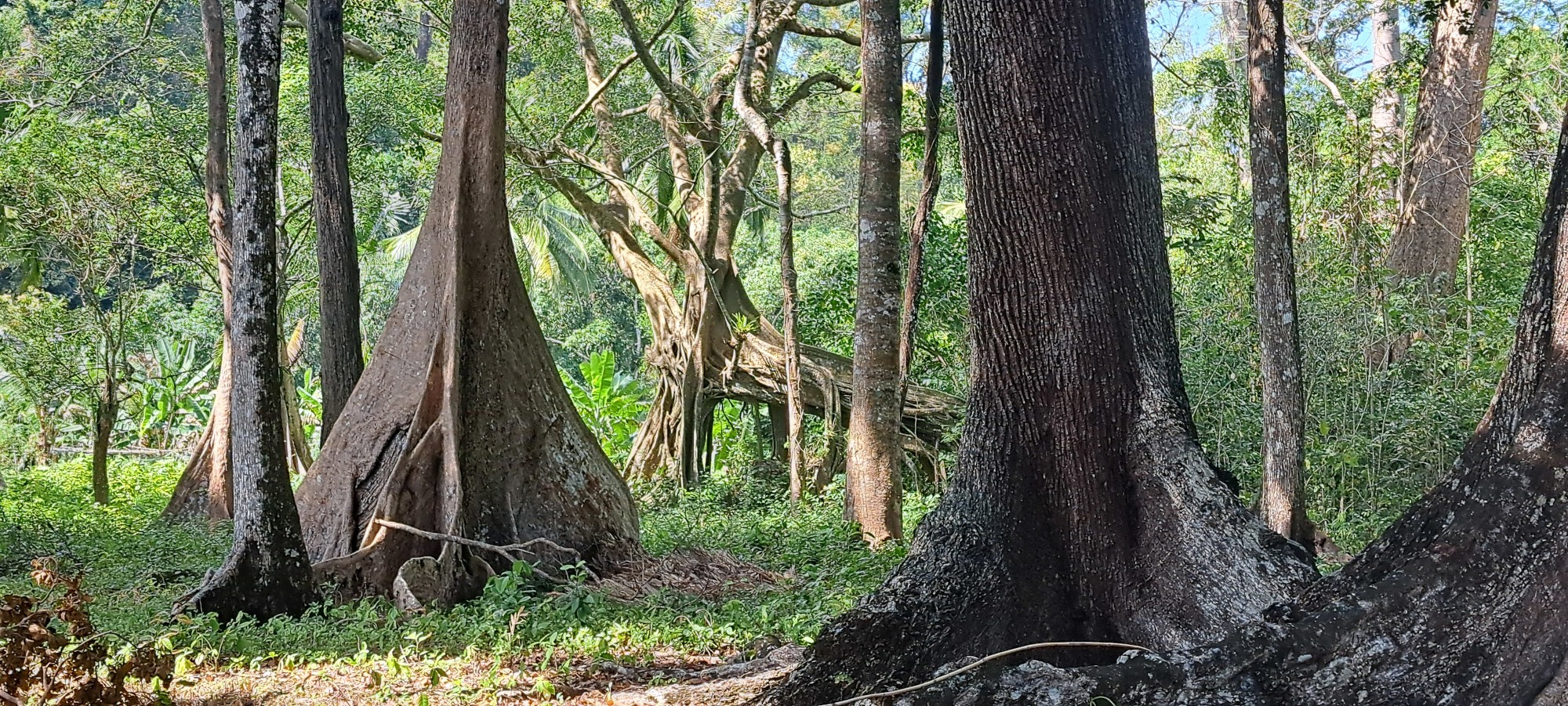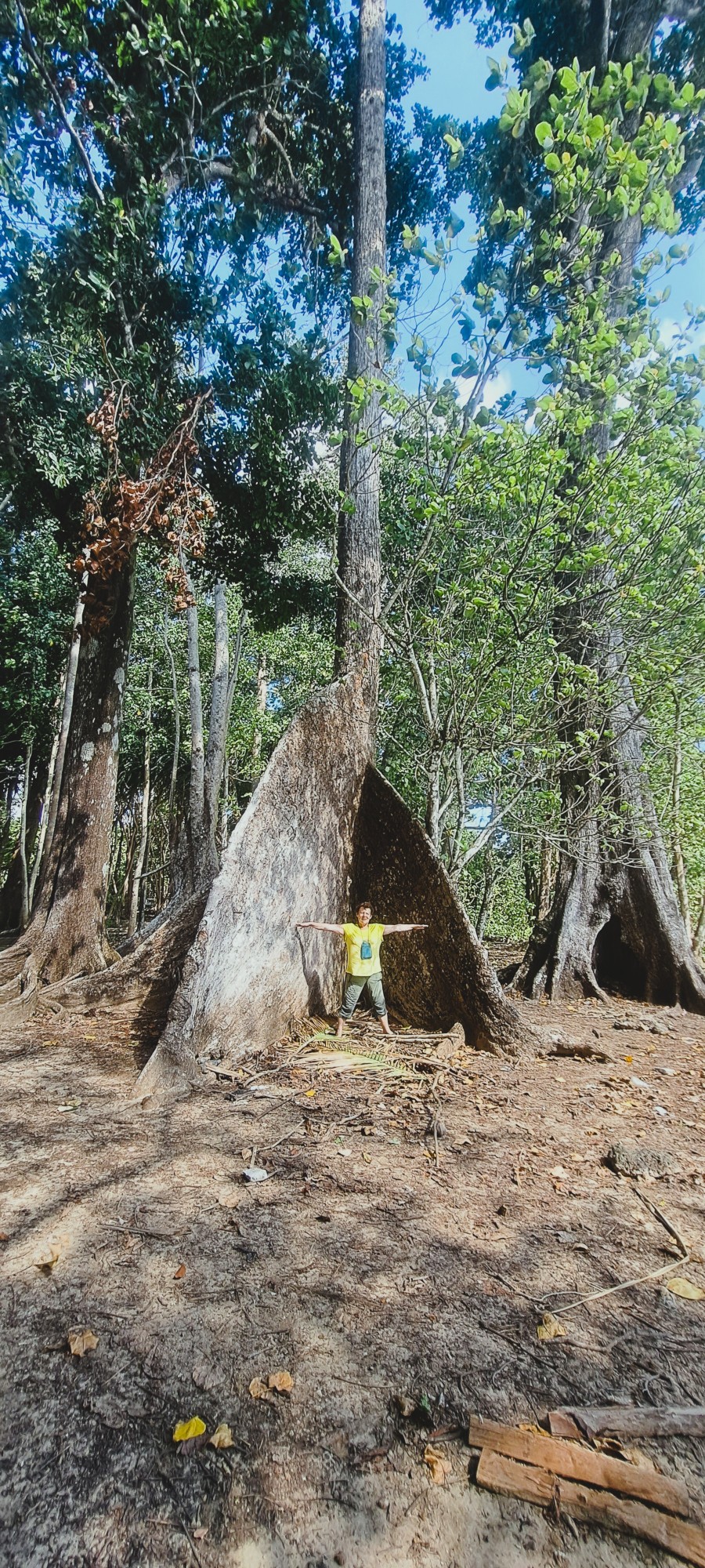Sokat barangoltunk az őserdőben. A csapás szélén kis oltárokra, elhagyott áldozati helyekre bukkantunk. A parthoz közeledve helyenként mély lyukak tátogtak, amikben zölden csillogott a víz. Liánok csüngtek fölöttük, amelyek a lyukakba esett vándorlót megmenthetik a fulladástól. Ezek már annyira közel vannak a tengerhez, hogy a vízszintjük az apállyal és dagállyal változik.