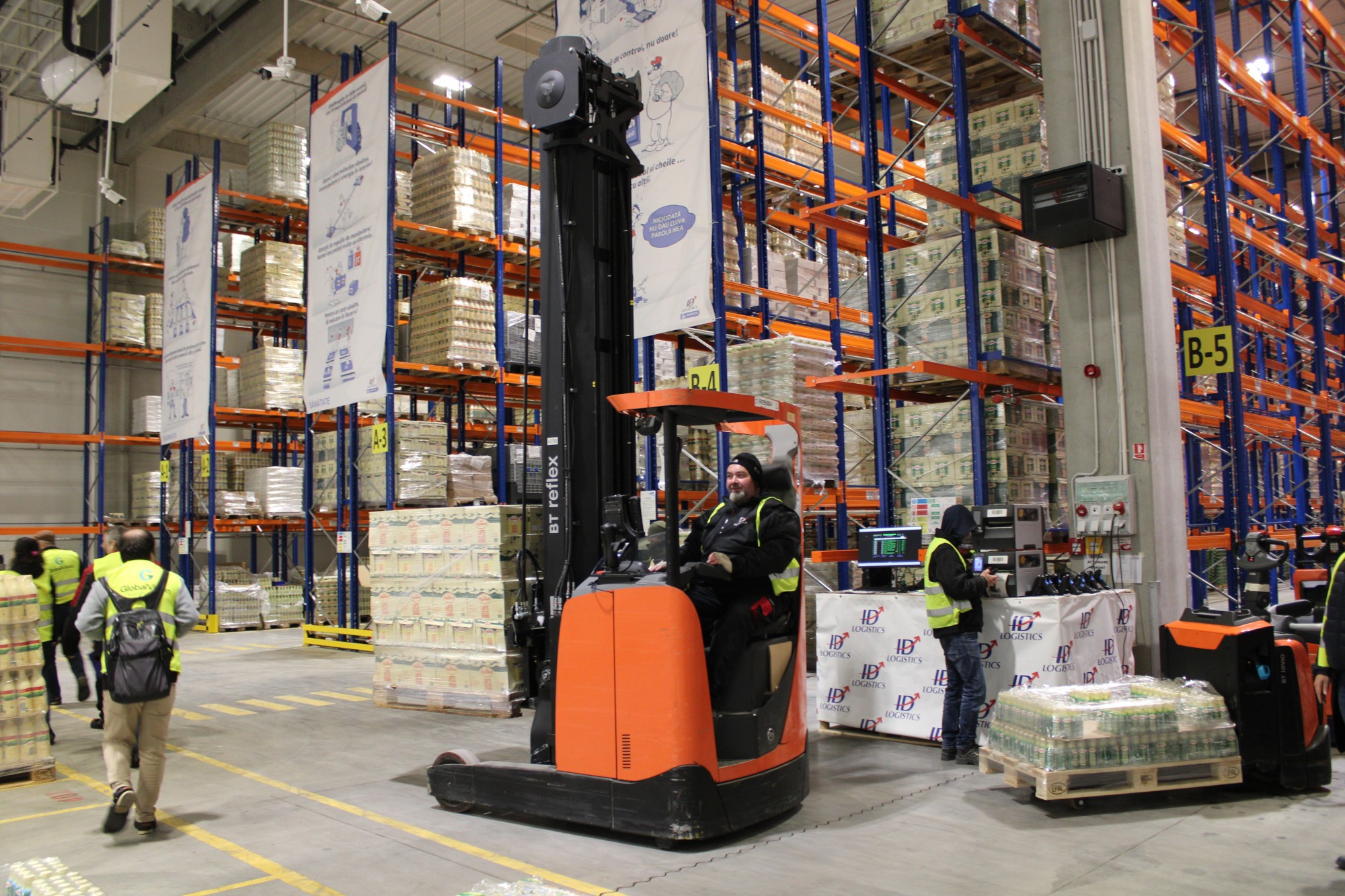 A felszólalások után a cégvezetők, elöljárók szimbolikusan felavatták a létesítményt, majd csoportonként betekinthettünk a logisztikai munkába. Megtudtuk, hogy a klasszikus tárhelyen 2000 raklapot tudnak tárolni, de van egy szűk tároló is, ahova 5000 raklap fér be. A 4500 négyzetméteres raktárból 3750 a hűtött felület, ahol 2 és 4 Celsius-fok közötti állandó hőmérséklet van. A polcokról robotok veszik le és készítik elő az átrakodáshoz a termékeket, amelyeket automata fóliázóval is báláznak, innen rakodógépekkel teszik a kamionokba. Jelenleg a raktárban váltásokban összesen 57 alkalmazott dolgozik.