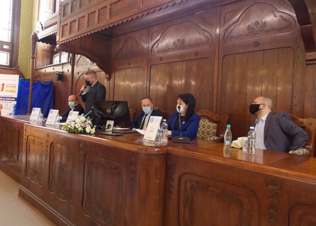 Dr. Iuliu Moldovan, a megyei közegészségügyi igazgatóság igazgatója rámutatott, hogy az általa vezetett intézmény a tanintézmények mellett áll, és köszönetet mondott a tanfelügyelőségtől kapott logisztikai segítségért az oltópontok megnyitásában. A továbbiakban felvázolta a megyei helyzetet: 23.000 pozitív eset, 7.000 halott, 100 személy az intenzív osztályon. Bár a harmadik hullám csökkenőben van, továbbra is problémát jelent a kórházi helyek, a súlyos esetek száma, holott „a küzdelemnek” a kórházba utalás előtt kellene lezajlania. Megyénkben 80.000-en kapták meg az első oltást és 50.000-en az emlékeztető vakcinát. A tanügyi személyzet átoltottsága 50 százalék alatt van, holott 57 százalék kellene ahhoz, hogy a normális állapotot elérjék. Mindenki belefáradt a járványhelyzetbe, amelyből csak közös erőfeszítéssel lehet kilábalni – hangsúlyozta az igazgató.