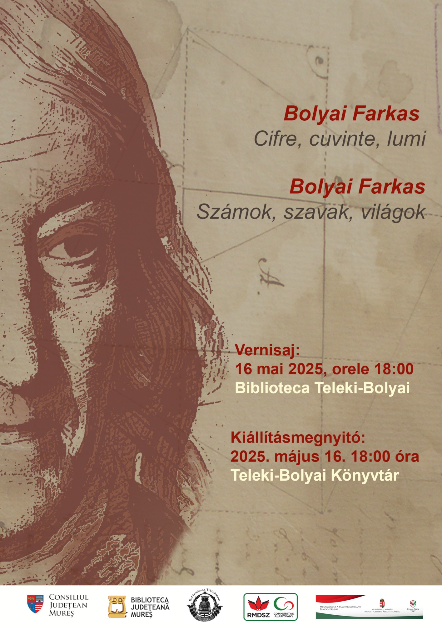 A Teleki Tékában a Múzeumok Éjszakája már péntek délután 6 órakor elkezdődik: a Bolyai Farkas. Számok, szavak, világok című kiállítás megnyitásával tisztelgünk a 250 éve született polihisztor előtt. A tárlat megálmodója, Kovács-Gorboi György a sokoldalú tanár és matematikus világait mutatja be, a különböző területeken kutató tudóst, a drámaírót és nem utolsósorban: az embert. A Bolyai Múzeum állandó kiállításának kiegészítéseként olyan részletekbe nyerhetünk betekintést, melyeket eddig csak a kutatók ismertek.