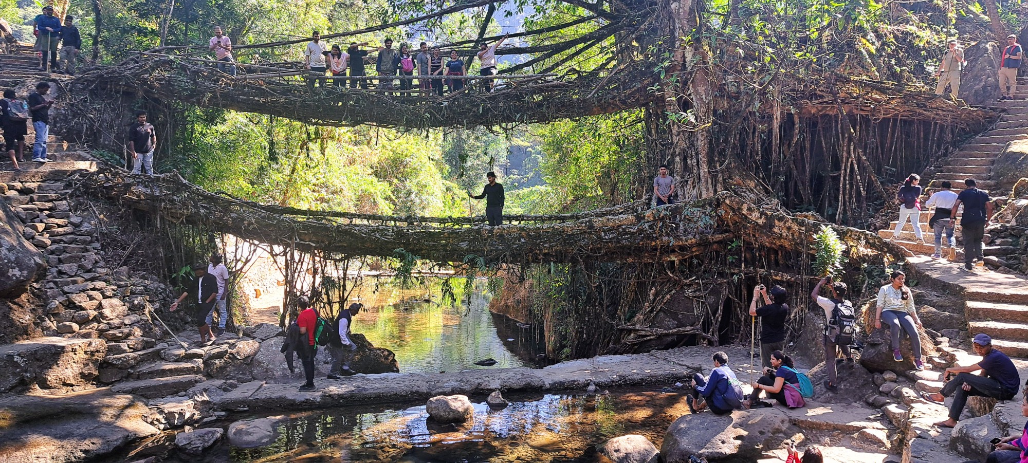 Nyáron, a monszun idején a hegyi patakok vad áradattá duzzadnak, amik áthidalására egy ravasz technikát találtak ki a khászi és jaintia népek: élő fagyökerekből építenek hidakat.