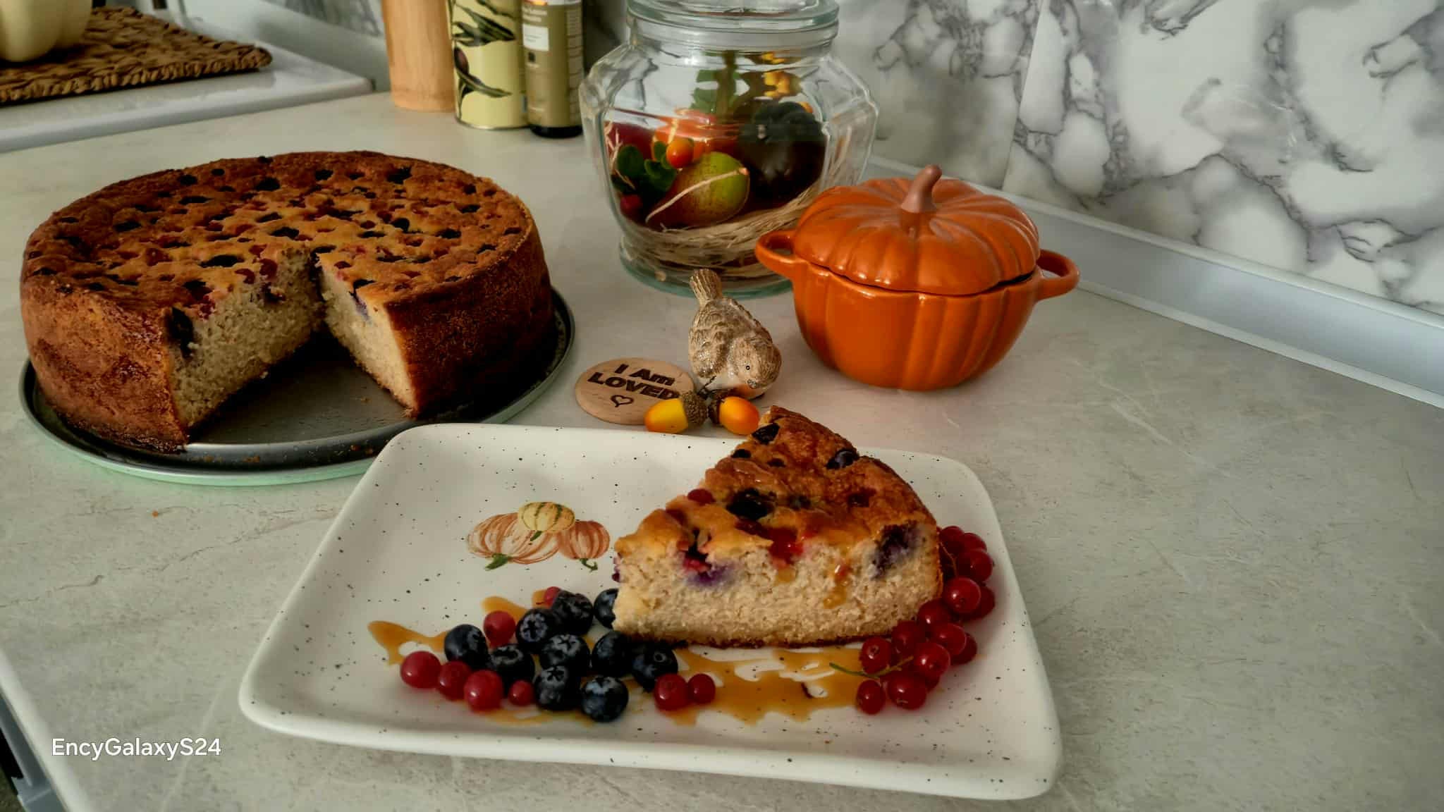 Megfőzök 15 dkg kerek szemű rizst fél liter tejben egy csipet sóval és két evőkanál cukorral vagy mézzel, amíg krémes tejberizst kapok, majd hagyom langyosra hűlni. Belekeverem két tojás sárgáját, egy teáskanál vaníliát, egy kis reszelt citromhéjat, 14 dkg zablisztet és egy teáskanál sütőport, három evőkanál olívaolajat, 15 dkg olvasztott vajat. A tojásfehérjét kemény habbá verem, majd óvatosan beleforgatom a masszába. Egy kivajazott, liszttel megszórt sütőtálba beleöntöm a keverék felét, rászórok kb. 20 dkg gyümölcsöt (pl. málna, áfonya, barack vagy alma), majd betakarom a maradékkal, a tetejére is lehet gyümölcsöt tenni. Előmelegített sütőben 180 fokon kb. 35–40 percig sütöm, amíg aranybarna lesz a teteje. Langyosan a legfinomabb, porcukorral, joghurttal vagy vaníliasodóval tálalva. A formát kivajazom, majd prézlit szórok rá, tortaformában vagy hagyományos tepsiben sütöm meg.