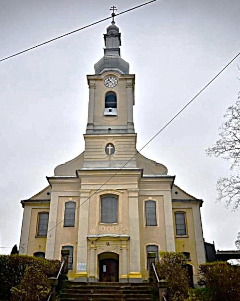 Az épület nyugati homlokzatához karcsú, hagymasisakos torony csatlakozik. A templom alaprajza jellegzetesen barokk: a hosszház három hajóra oszlik, a keskeny, és a főhajónál rövidebb mellékhajók terét karzatok töltik ki.