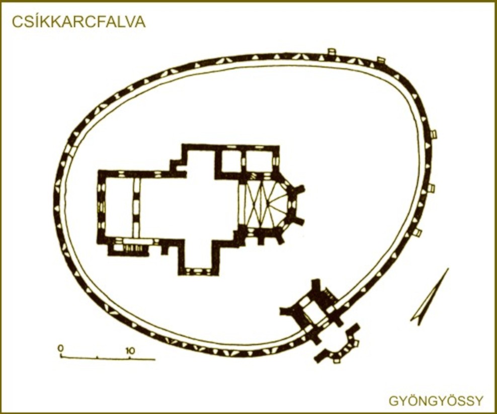 Ezzel megérkeztünk Nagyboldogasszonyfalvára, a későbbi Harcfalvára, annak is régvolt templomához. Mindez a mai Csíkkarcfalva.