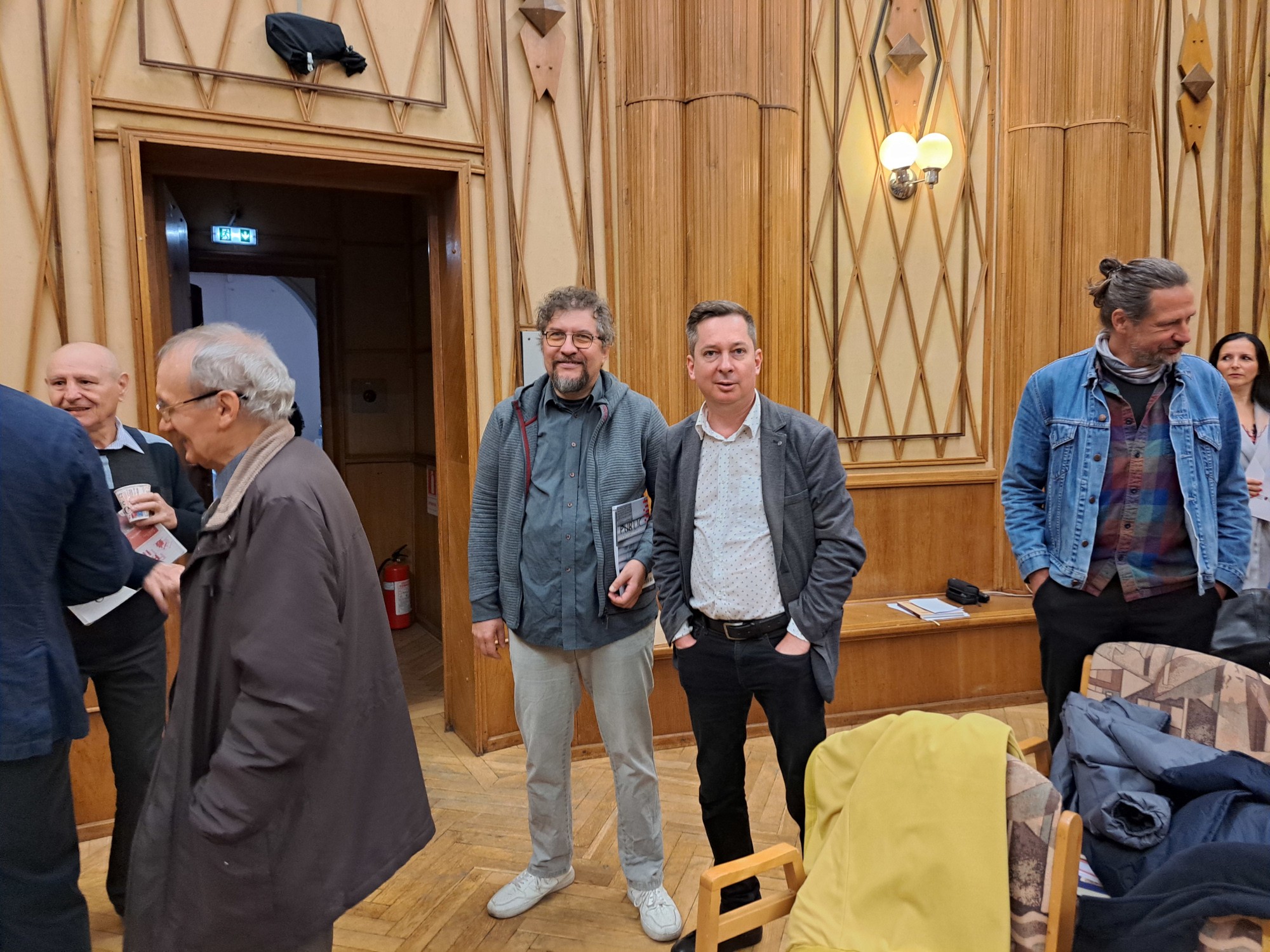 Lazítás az eszmecsere szünetében... (Középen) Demény Péter és Szabó Róbert Csaba,