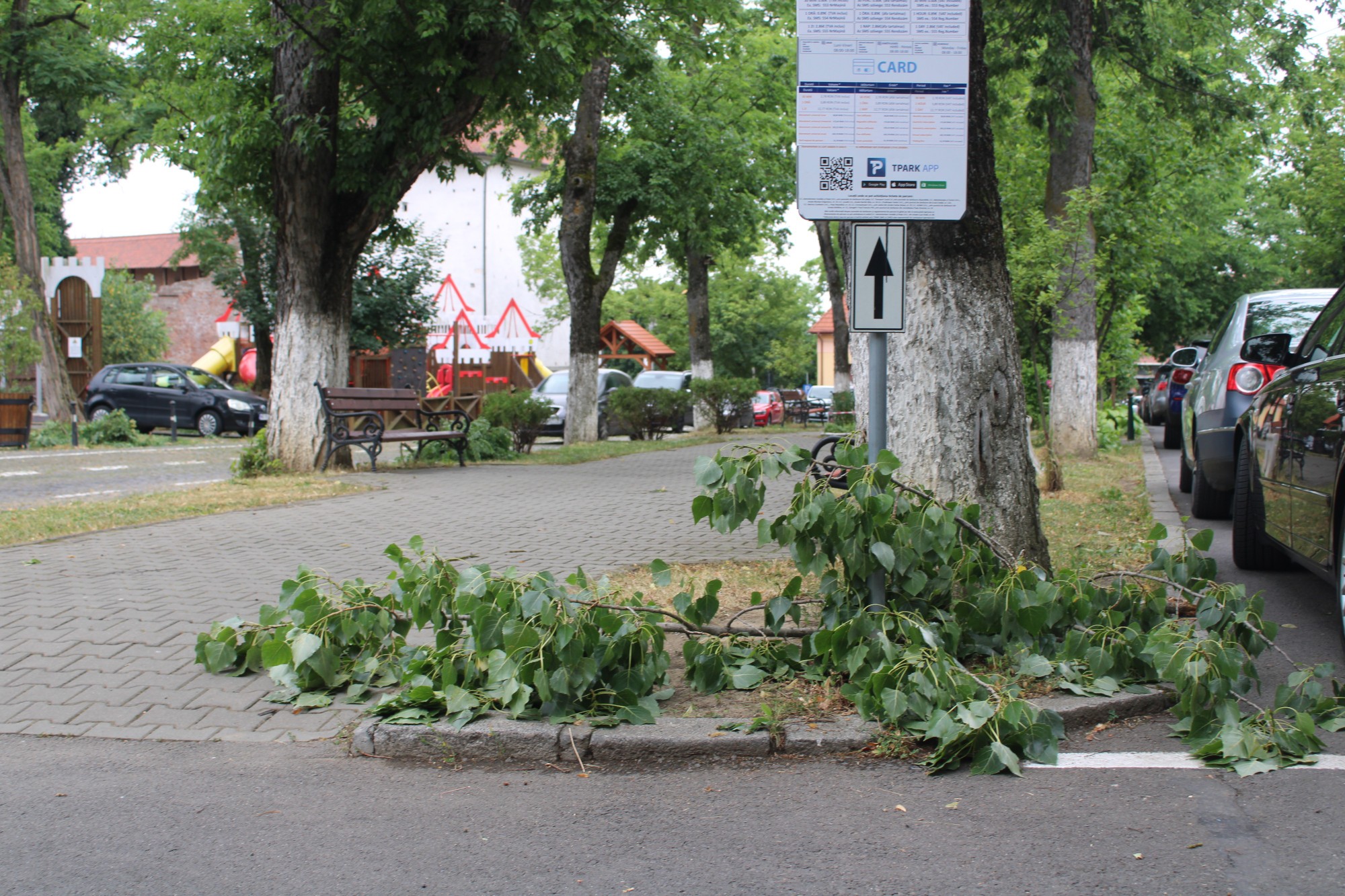 Marosvásárhelyen többek között a Vár sétány fáit tépázta meg, az ezüstfenyőket gyökerestől fektette földre a vihar, a Bartók Béla utcában letört fákat kellett eltávolítsanak a tűzoltók.