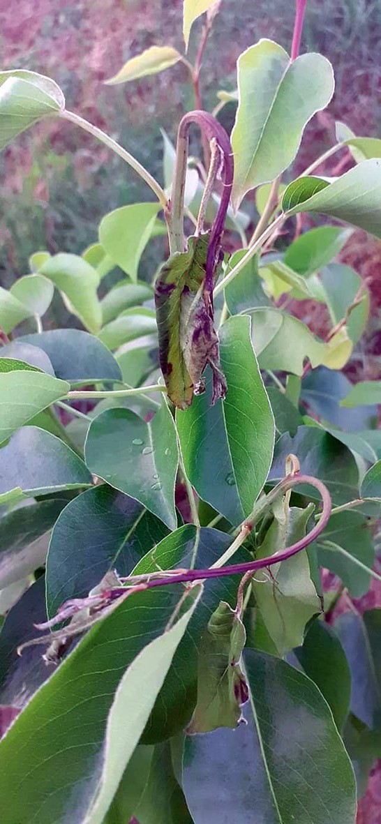 Az almatermésűeket sújtja ez a betegség. Virágzáskor a kórokozó a bibéken keresztül jut be a növénybe, majd a gyümölcskötődés után jelentkezik. Elsősorban abban nyilvánul meg, hogy a friss hajtásvégek pásztorbotszerűen meghajolnak. Ezek később felszaporodnak a növény szervezetében, ami úgy jelentkezik, mintha az alma- vagy a körtefát leforrázták volna, így a levelekkel és a kötött termésekkel együtt összeszáradnak. Ezzel a kórokozóval szemben csak virágzáskor lehet hatékonyan védekezni.