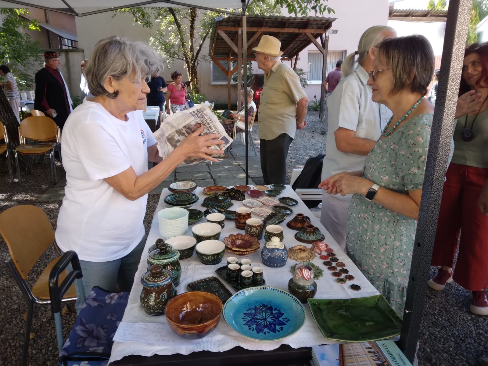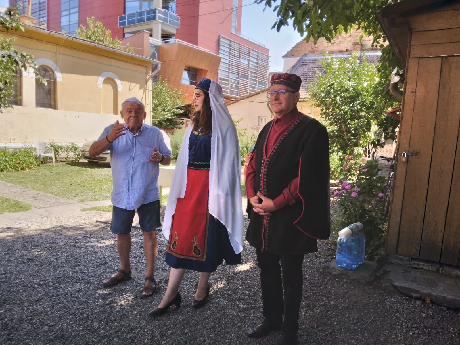 Miközben egyesek a kiállítást szemlélték, az udvaron a fák árnyékában gyülekezők az örmény kereskedőkről kifüggesztett régi fotókat szemlélték.