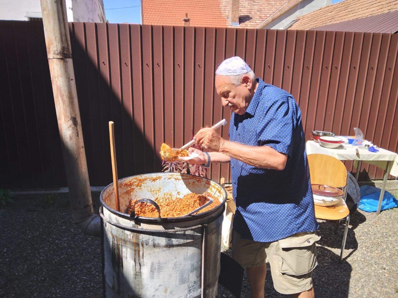 Az érdeklődők az udvaron megkóstolhatták az örmény hurutos ángádzsábur levest, a diós édességet, a dalauzit, a zsidó csólentet. Nagy keletje volt ezeknek a finom étkeknek, hiszen sorban álltak az emberek, mindenki meg akarta kóstolni ezeket a különlegesen finom ízeket. A hurutos levesbe több mint 3000 tésztafülecskét bögyörgettek és töltöttek meg darált marhahússal. A leves főszakácsai Kántor Éva és lánya Anna, valamint Mánya Enikő voltak. A csólentet Rosenberg Dezső készítette és szolgálta fel a jelenlevőknek. Elmondta, hogy ezt szombatra szokták készíteni, amikor a zsidók nem dolgoznak, ezért pénteken szokták megfőzni, s éjszakára a sütőkemencébe tették, hogy másnapra is meleg maradjon. Paszulyból, gersliből (árpagyöngy), marhahúsból főzik, jó fűszeresen, 10-12 órán keresztül. Nem mellékes, hogy a rendezvényen kedves emberek kellemes beszélgetésekbe feledkezve kellemes órákat töltöttek együtt a zsinagóga udvarán.