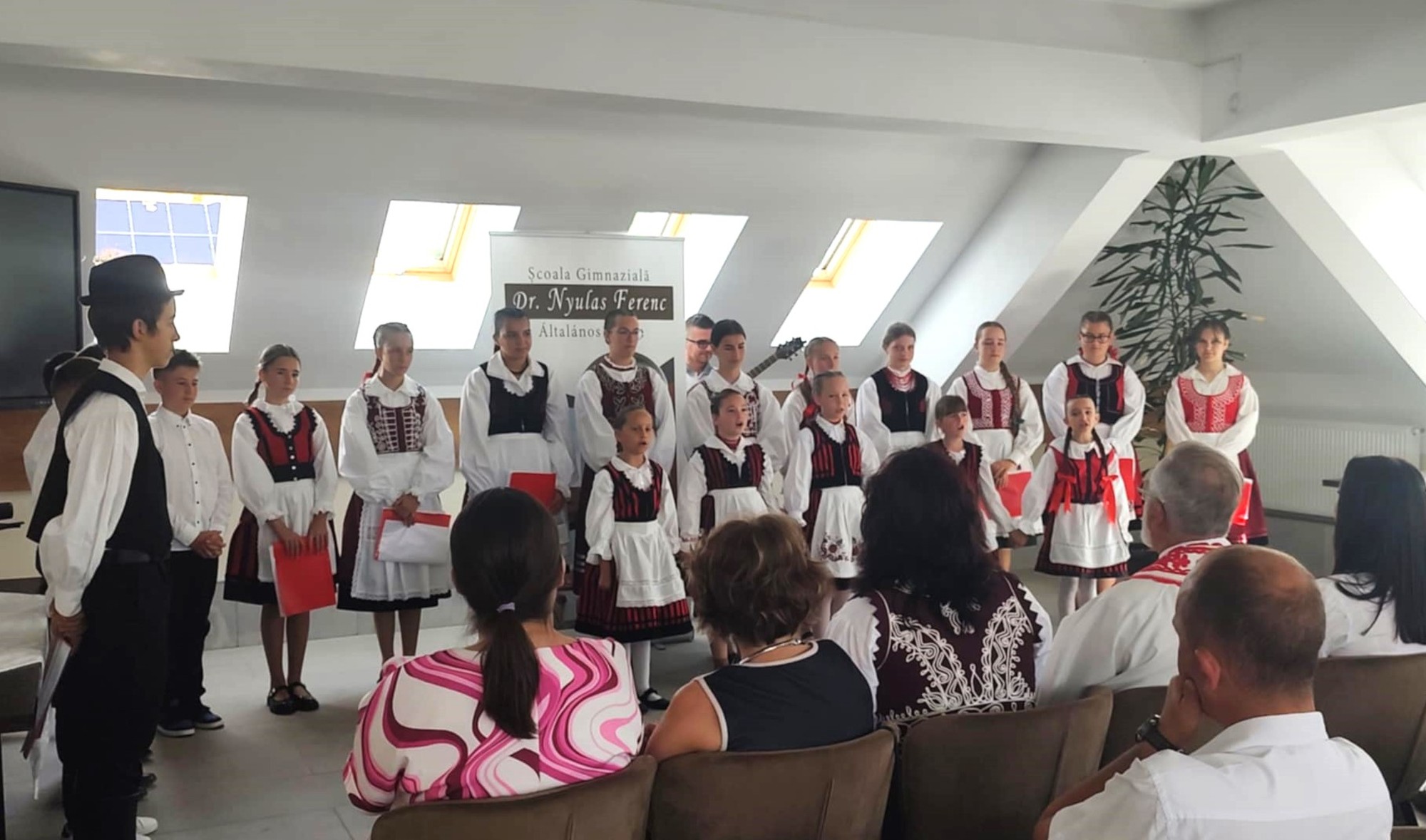 Az ünnepi szalagátvágás után az általános iskola dísztermében az érdeklődőket a diákok nívós kétnyelvű műsorral köszöntötték, amelynek keretében a Fodor Flóra irányította Gyöngyszemek énekegyüttes két korcsoportja is olyan népdalokat adott elő, amelyeket ezen a vidéken gyűjtött Bartók Béla 1914-ben.