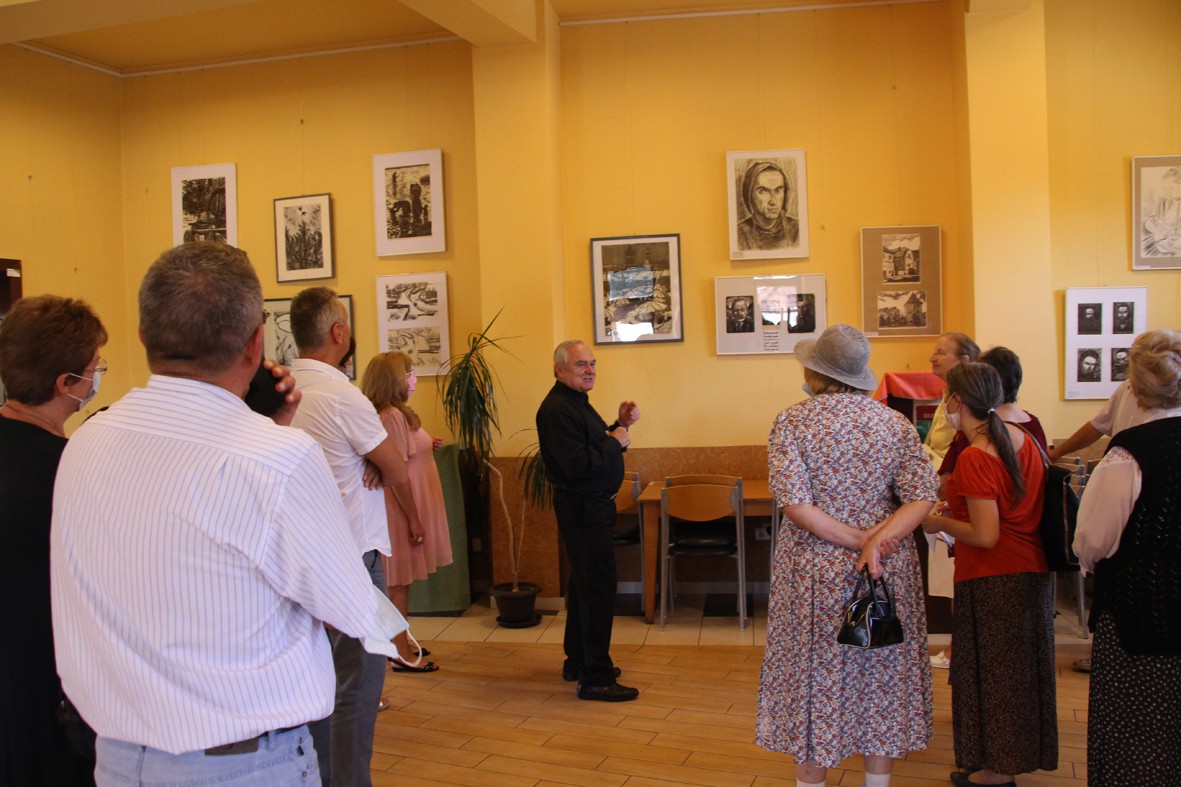 A templom gyülekezeti házában a művész korai és későbbi alkotói periódusának remekei, fametszetek, szénrajzok, grafikák és pasztellképek várták – és várják az elkövetkezőkben is – a látogatókat. Ferenczy Miklós egyebek mellett Gy. Szabó Béla szüleinek ábrázolására – az első fametszetei közé tartozó munkákra –, az inspirációs forrásként szolgáló nyárádszentbenedeki és bözödi táj megörökítéseire, a kolozsvári régi piac emlékét őrző Téli vásár című műre, a pasztellképek sorában megcsodálható Körhintára hívta fel a figyelmet. Szemléletes tárlatvezetését egy személyes gondolattal zárta: – Gyermekkoromtól annyi jóságot, szeretetet kaptam Gy. Szabó Bélától, hogy ezt tovább szeretném adni.