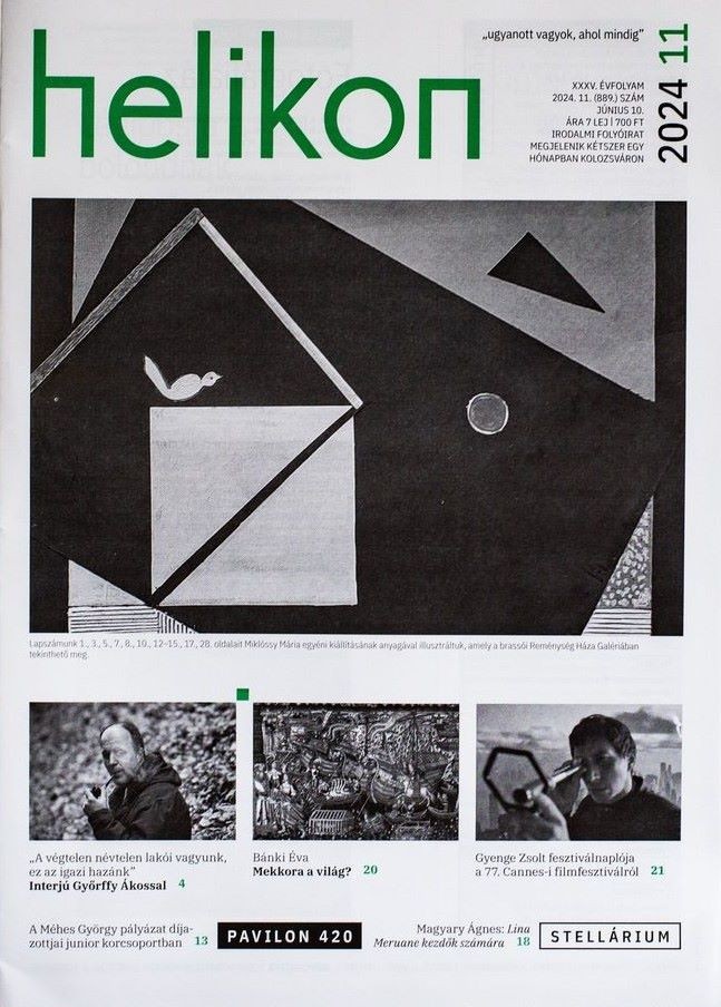Megjelent a Helikon első júniusi, 2024/11-es száma, Várkonyi Onerva Flóra fordításában Pelle Romantique verseivel, valamint Mărcuţiu-Rácz Dóra vezércikkével.