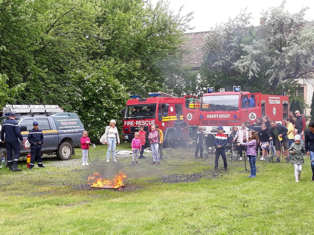 Számos ötletes játék és programpont várta a látogatókat, egész nap szirénaszó vegyült a gyermekzsivajba, ugyanis mindenki kipróbálhatta a tűzoltó-, rendőr- és mentőautót, de a tűzoltást is, bár az apróságokra való tekintettel itt csak vedrekből pumpált vékony vízsugarakat kellett szórni. Aki ezen már túljutott, mehetett kisebbnél kisebb pónilovakat simogatni, de póniszekérre is fel lehetett ülni egy rövid sétára. A sportcsarnokban a pedagógusok kézműves-tevékenységekre várták a derűs arcú gyerekeket, kőfestés, papírsárkány vagy éppen korona elkészítése közül lehetett válogatni, de sokan abban is örömüket lelték, hogy a tornamatracokon ugrálhattak mezítláb. A szomszédos tornateremben ügyességi játékokban (zsákban futás és gumiabroncs cipelése, teniszlabda madzagon való vezetése) lehetett versenyezni, vagy éppen kipróbálni az íjászatot, és mindezekért pontokat lehetett gyűjteni, amiket ezután édességre lehetett váltani. Merthogy az udvaron fagylaltot és kürtőskalácsot is árultak. A mozgékonyabb gyerme-keknek pedig nyitva állt a focipálya kapuja, és a kosarazást is kipróbálhatták.