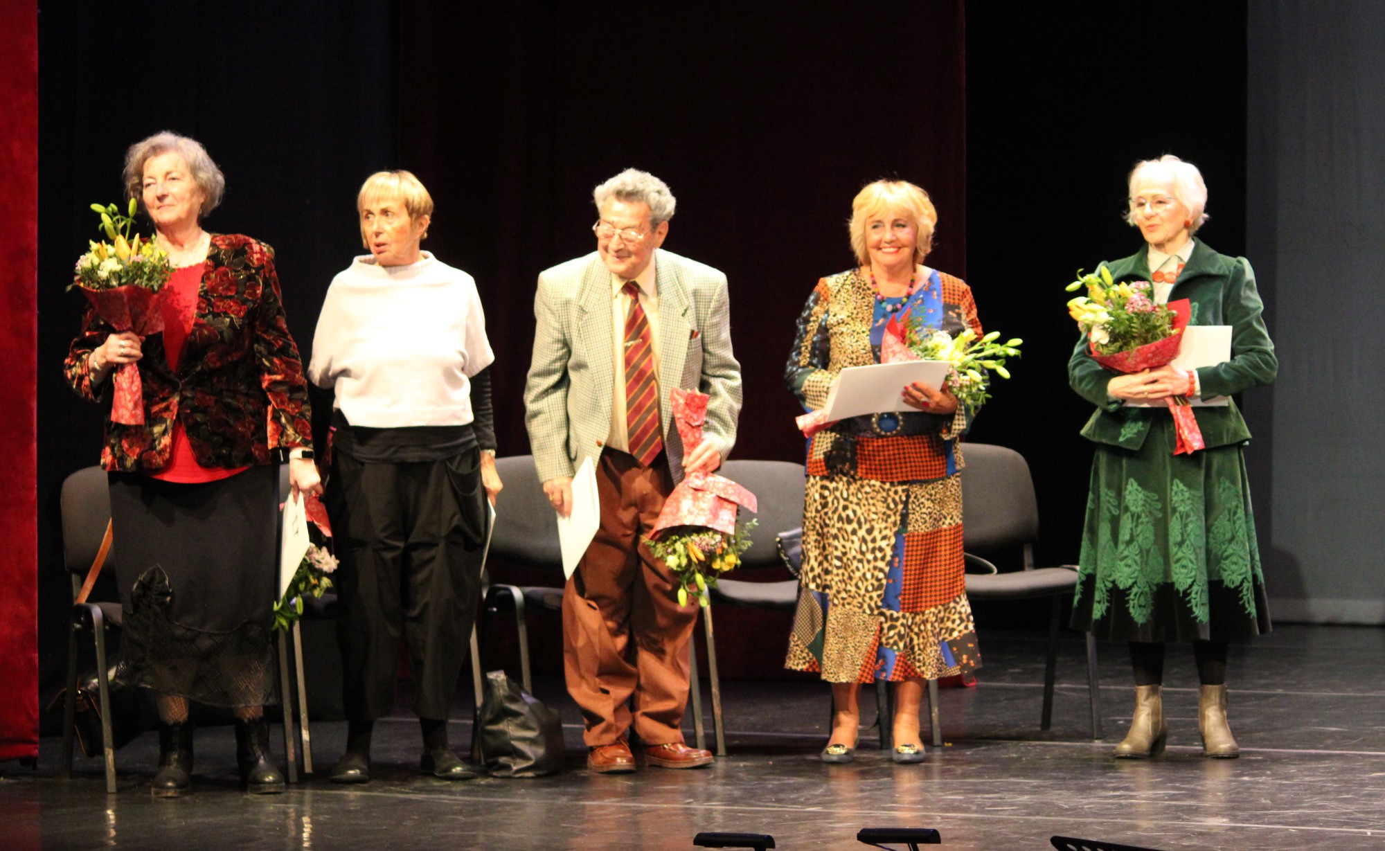 Vasdiplomát kapnak a 65 éve végzettek – olvasta fel a végzős osztály tagjainak a nevét, köztük a Boér Ferencét, aki üdvözletét küldte, és a Bathó Idáét, aki személyesen képviselte a csoportot, és aki Nagyváradon „szolgálta le” színészéletét. Tudni kell róla, hogy téglát téglára rakva önkéntes munkával részt vett az egyetem előadótermének, a Stúdió Színház épületének a felépítésében sok utána következő nemzedék számára, de színpadán most lépett fel először. „Örülök, hogy itt lehettem, mert az én koromban az is öröm, ha valahol lehetek – mondta, amire hatalmas tapsot kapott.