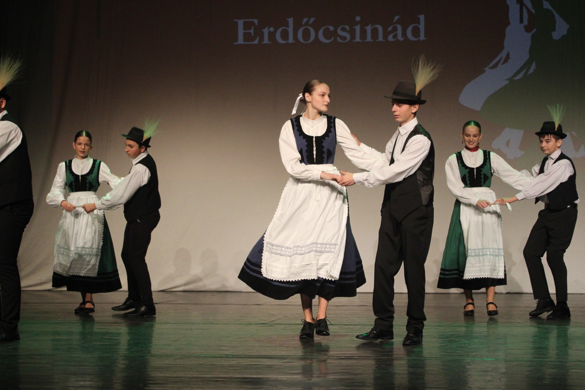 „Örömmel vállaltam az Árpád laudációját, mivel volt alkalmam nyomon követni életútját a Napsugár néptáncegyüttesben táncoló legénykétől a családapáig, a projekmenedzsmentet menet közben megtanuló együttesalapítótól a közösségépítő emberig. (…) 1993. október 11-én született, általános iskolai tanulmányait Csittszentivánon, középiskolai és egyetemi tanulmányait pedig Marosvásárhelyen végezte. Puskás Árpád mérnökember, de az ismerkedést a néptánccal és a hagyományőrzéssel már gyermekkorában elkezdte Csittszentivánon, ahol Bartha Ilona tanító néni és Szász Péter néptáncos ösztönzésére ismerte és szerette meg a néptáncot. Azóta sem hagyta abba, sőt, a Napsugár és a Bekecs néptáncegyüttes tagjaként évről évre bizonyította, hogy a néptánc nem csupán egy szép hobbi, hanem élete egyik legfontosabb része. Tagja volt a Bekecs néptáncegyüttes azon csapatának amely 2014-ben a Felszállott a páva tehetségkutató legjobb külföldi táncegyüttese címet kapta, 2024-ben pedig a Dave Gould online minősítő táncversenyen felnőttkategóriában kiemelt arany minősítést kapott a Gyöngyvirág néptánccsoporttal. (…) A csittszentiváni Gyöngyvirág néptáncegyüttes vezetőjeként számos fiatal számára adta át a néptánc szeretetét, és járult hozzá ahhoz, hogy a magyar népi kultúra tovább éljen és gazdagodjon. A csittszentiváni Gyöngykoszorú néptánctalálkozó kezdeményezőjeként és főszervezőjeként Árpád kiemelkedő szerepet vállalt abban, hogy Csittszentiván vonzza a néptánc iránt érdeklődőket helyben és a régióból egyaránt. 2017 óta minden évben ő szervezi ezt a találkozót, amely mára a helyi és regionális közösségek egyik legfontosabb eseményévé vált. Az ő irányításával a Gyöngykoszorú találkozó folyamatosan fejlődött és bővült, mind programkínálatában, mind résztvevőinek számában. Minden évben igyekezett új színt vinni a rendezvénybe, és erősíteni a magyar néptánc hagyományait Csittszentivánon és azon túl is. (…) A Gyöngyvirág néptáncegyüttes több korcsoportjának vezetésével, a táncházak és edzőtáborok szervezésével a fiatalok bevonását és utánpótlás-nevelését is szívügyének tekinti. (…) Puskás Árpád Attila számára a néptánc nem csupán egy hagyomány, hanem egy élő, lélegző közösségi élmény, amelyet éltetni és továbbadni kell” – hallhattuk a laudálótól.