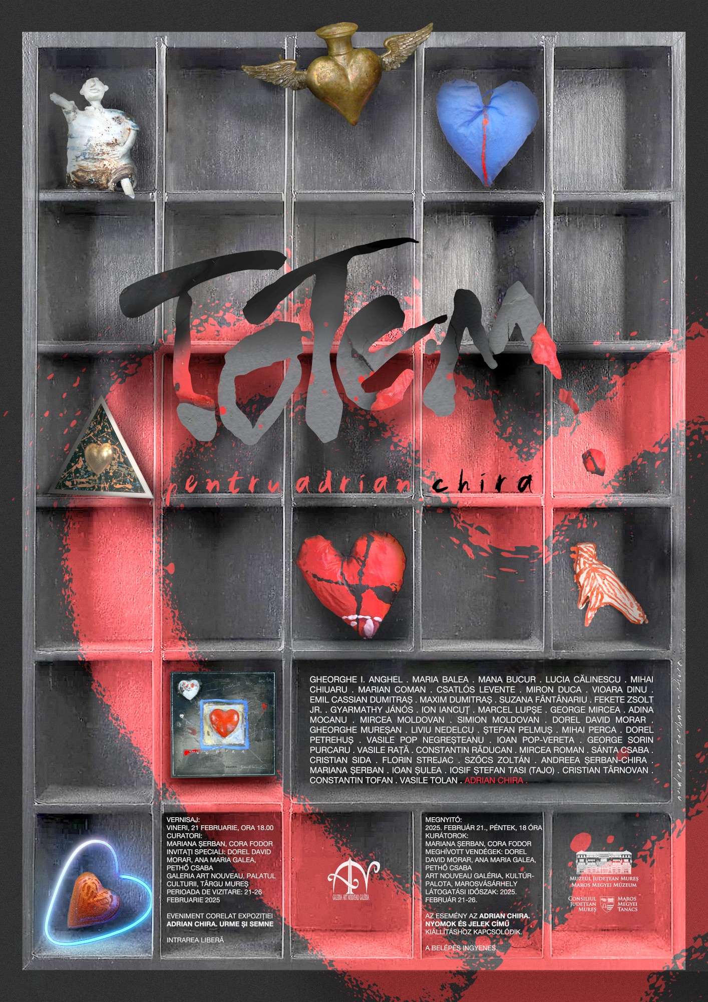 A Totem Adrian Chira számára című tárlat méltó elismerése Adrian Chira (1958–2017) művészi munkásságának, tehetségének és egyéniségének. A kiállítás a barátság totemje kíván lenni a marosvásárhelyi és az ország más részein élő művészkollégák részéről. A tárlaton szereplő festmények, grafikák és kortárs szobrászati alkotások által a részt vevő hivatásos képzőművészek tiszteletteljes emléket állítanak a művésznek.