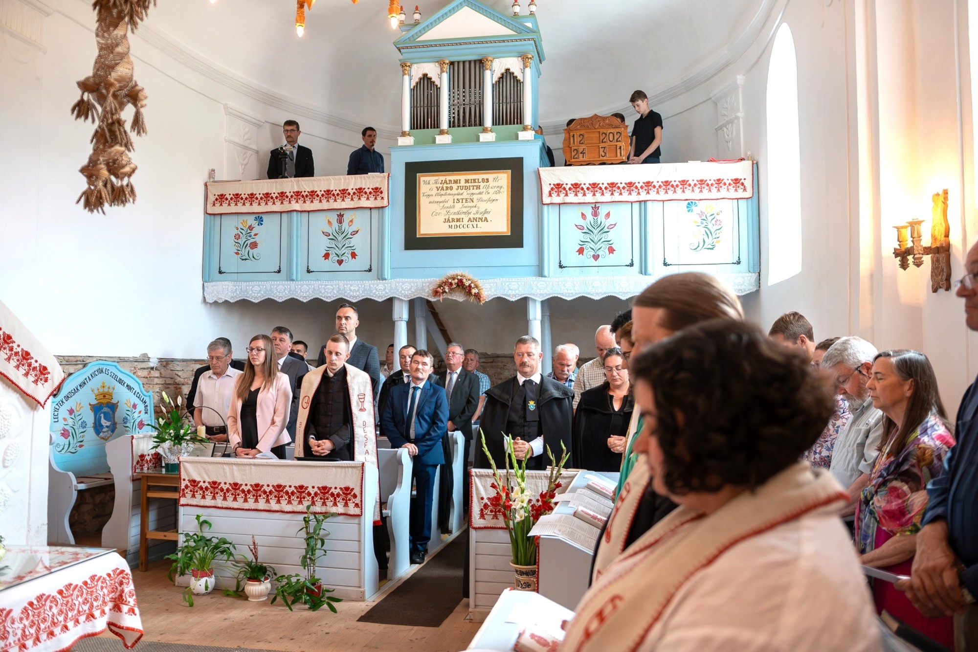 Csodálatos nap volt a múlt szombat a 319 lelkes désfalvi unitárius gyülekezet számára, az isteni gondviselés és az emberi szeretet megnyilvánulásának ünneplése, ugyanis több évtizedes gondok oldódtak meg, illetve vágyak teljesedtek be a gyülekezet életében az elmúlt időszakban. A csodálatosan fehérbe „öltözött” templomuk falai között sokan gyűltek össze mindezekért hálát adni. A nagyszabású ünnep istentisztelet keretében zajlott, amelyen ft. Andrási Benedek, a Magyar Unitárius Egyház főjegyzője végezte az igehirdetést, ezt követően Szombatfalvi Csongor házigazda lelkész tartott ismertetőt arról, hogy tulajdonképpen miért is ad hálát a gyülekezet: 2022-ben befejeződött a templom külső javítása, felújították az 1840-ben épült orgonát, illetve 35 éve testvérgyülekezeti kapcsolatokat ápolnak az Amerikai Egyesült Államokbeli Belmont unitárius gyülekezetével. Pozsár Róbert kolozsvári orgonajavító által játszott két zeneművel, valamint egy emlékjel leleplezésével felavatták a megújult templomi hangszert, köszöntőbeszédet mondott Kis István László gyülekezeti gondnok, ft. Andrási Benedek püspökhelyettes, majd Molnár Attila magyarsárosi lelkész, a Küküllői Unitárius Egyházkör közügyigazgatója felolvasta Márkos Hunor Elemér esperes üdvözlőlevelét. Az amerikai barátok részéről Chris Jablonski belmonti lelkész és Martha Durkee-Neuman segédlelkész szólaltak fel, majd Molnár Margaréta Boróka gyülekezeti tag három Kis-Küküllő menti népdal eléneklésével gyönyörködtette az ünneplőket.